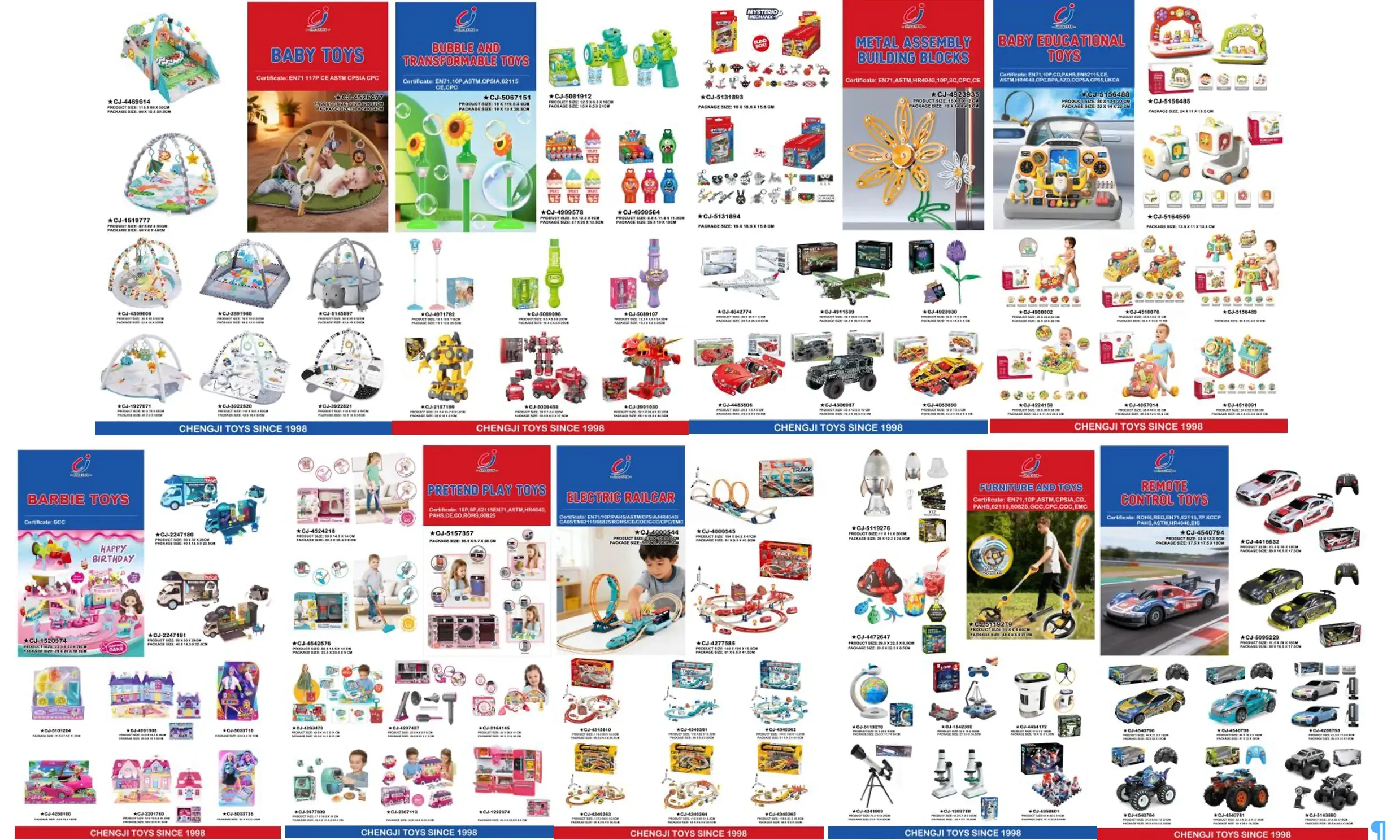 Chengji Toys has been a trusted toy manufacturer and supplier from China since 1998, with nearly three decades of expertise in the toy industry, helping global distributors, wholesalers, and e-commerce sellers source reliable and market-ready toys.