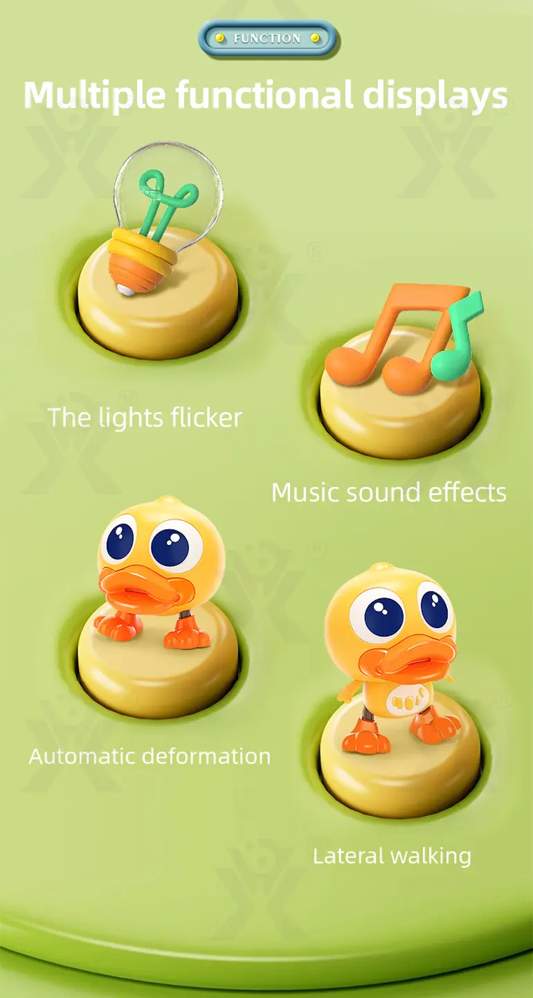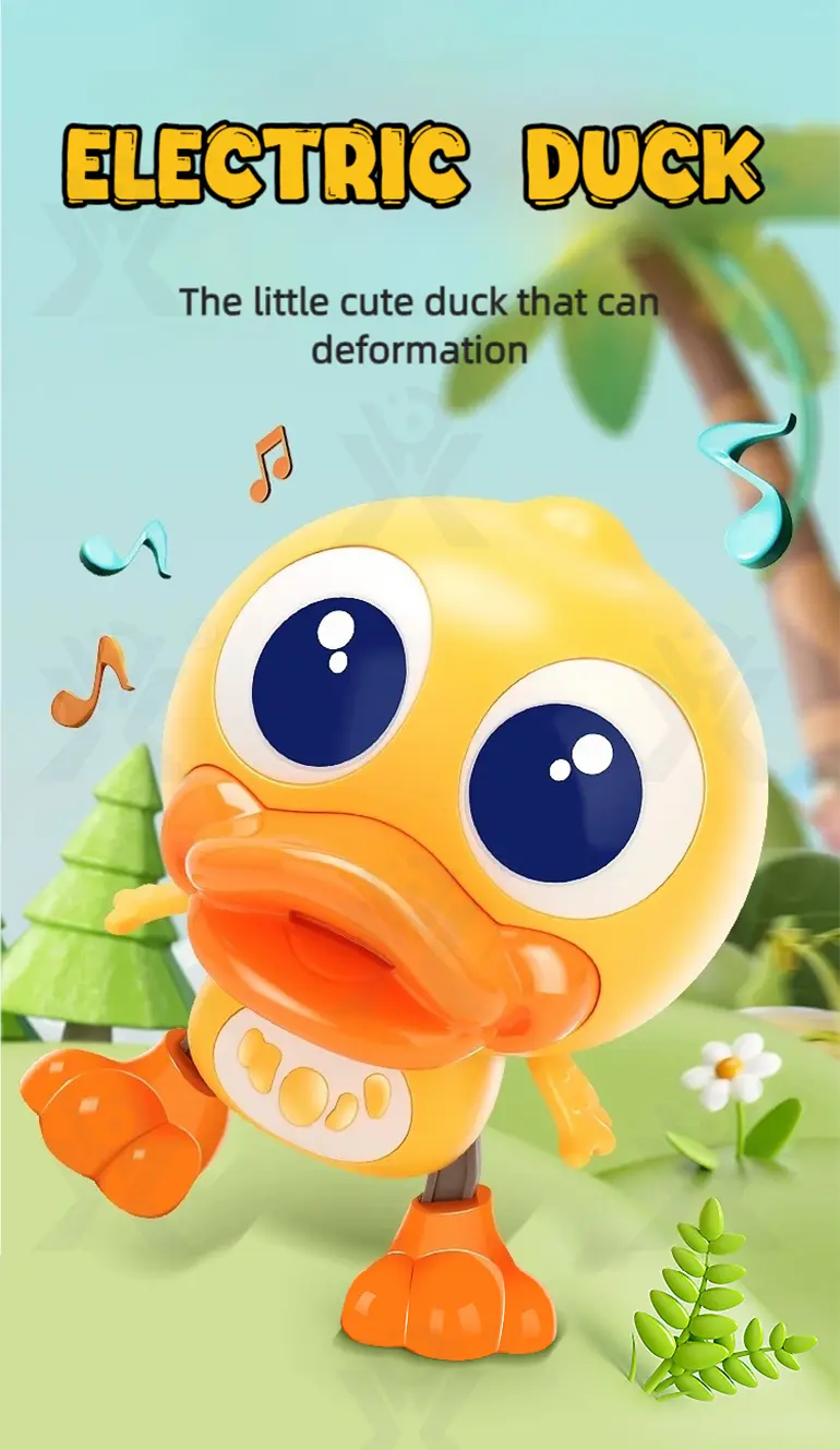 Wholesale electric walking duck, automatic deformation, lateral walking, flashing lights, dynamic music, encourages baby to sway & dance, sparks exploration & interaction.