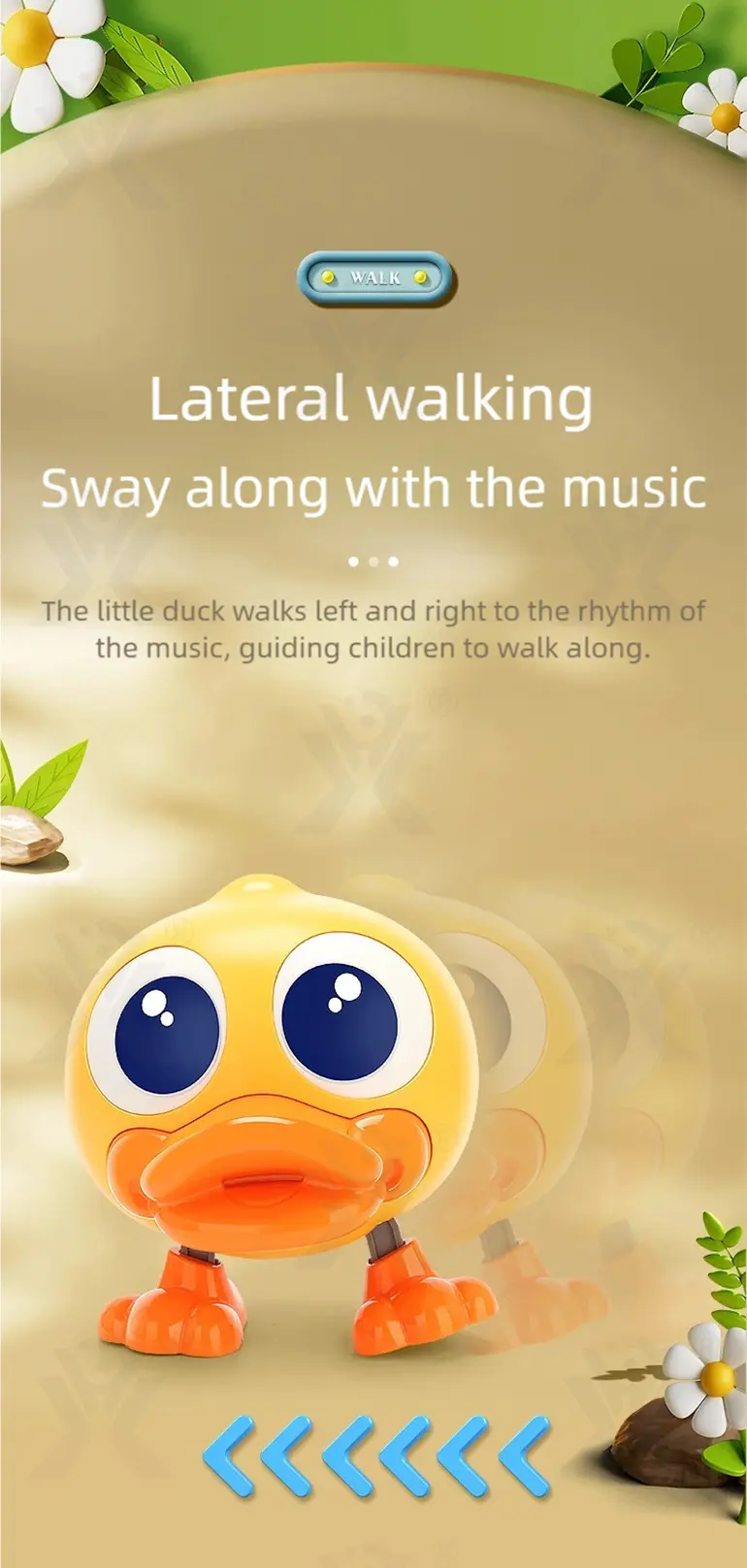 Unlike ordinary toys, this duck walks laterally—inviting babies to follow, watch, and develop spatial perception through playful observation. -