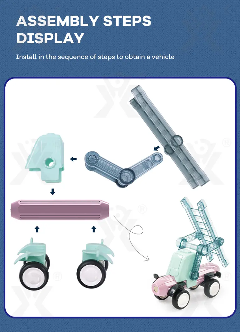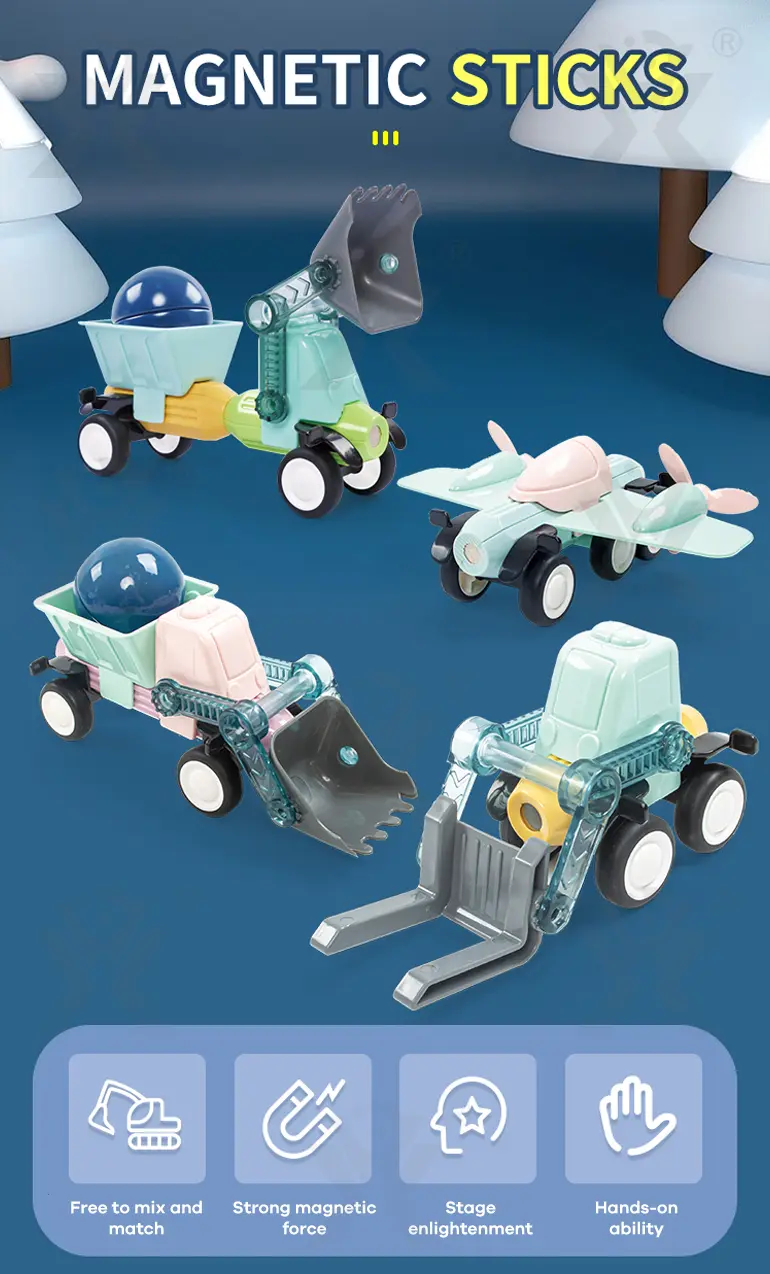 - Strong Magnetic Design: The rods feature powerful magnets for instant, secure connections that support complex structures. Kids can freely mix and match, realizing their ideas with this magnetic rod vehicle toy without limits.