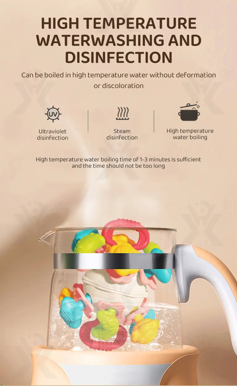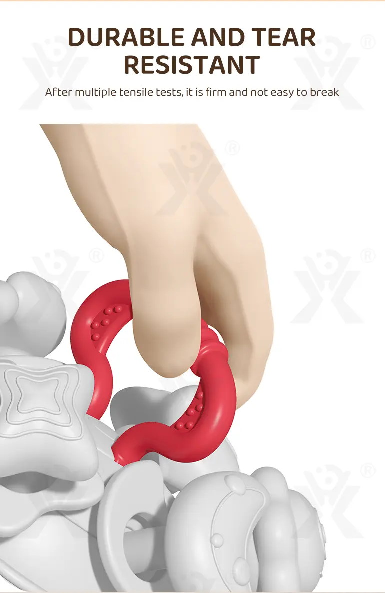 Grasp, spin, shake, and chew—this versatile toy supports fine motor skills, sensory exploration, and cognitive growth in one playful package.
