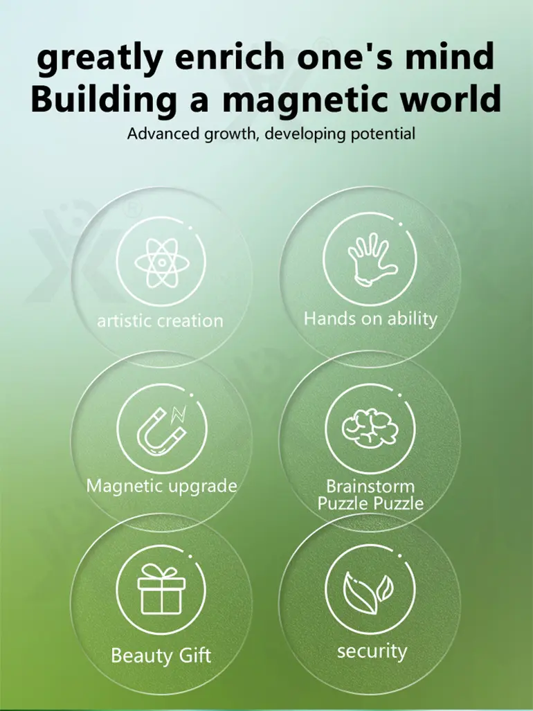 - Verbesserter starker Magnetismus für freieres kreatives Bauen: Eingebaute starke Magnete ermöglichen Verbindungen in mehreren Winkeln und stabile Strukturen. Damit können Kinder leicht komplexe 2D- und 3D-Konstruktionen erstellen.