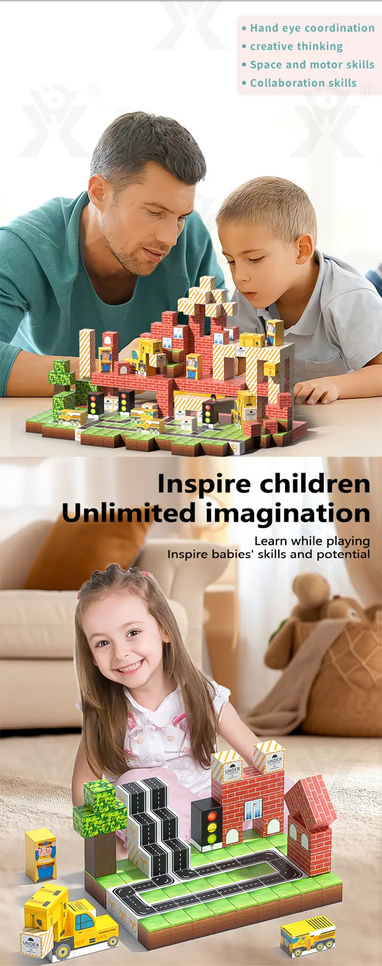 - Ganzheitliche kognitive Entwicklung durch Spielen: Der Bauprozess fördert die Hand-Augen-Koordination, das räumliche Denken, die Logik und die Zusammenarbeit.