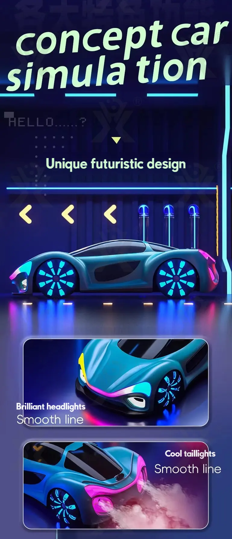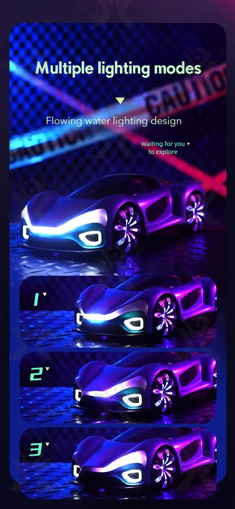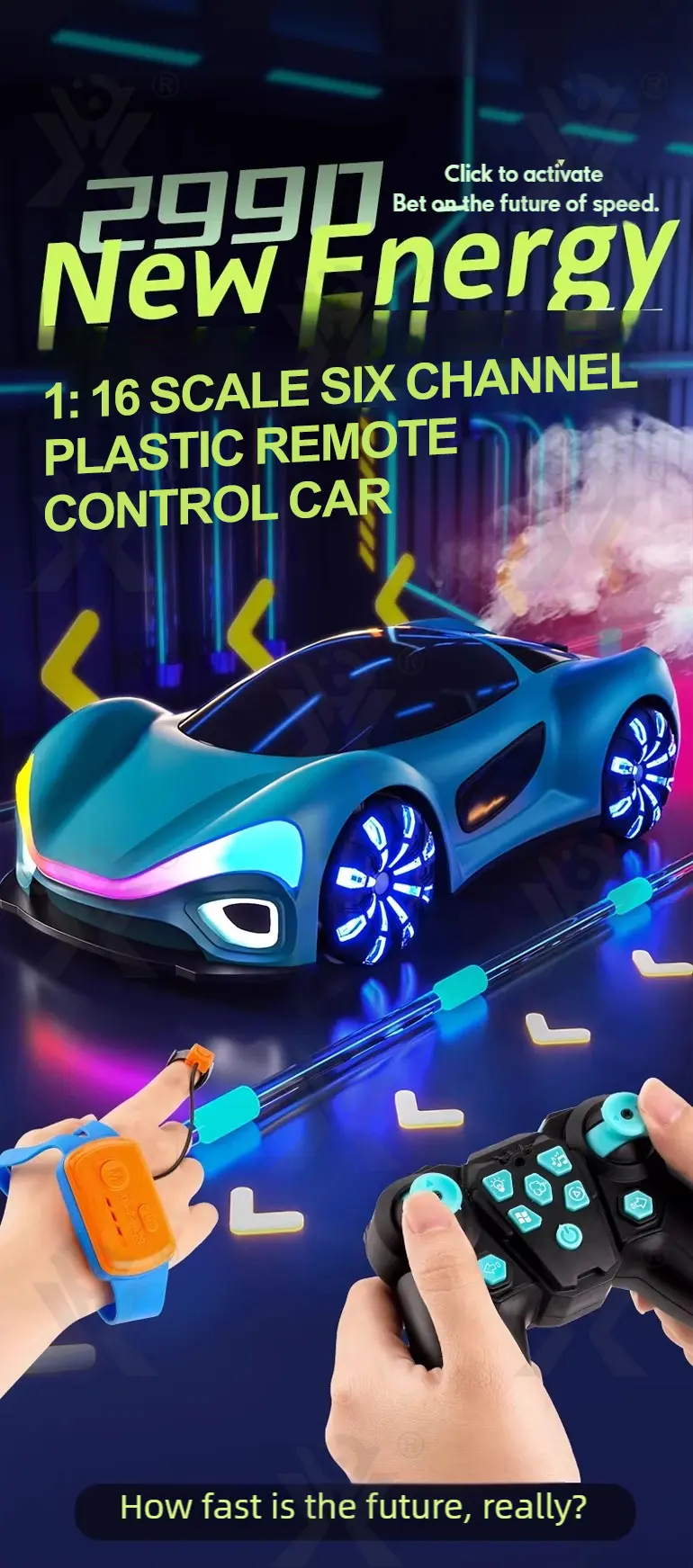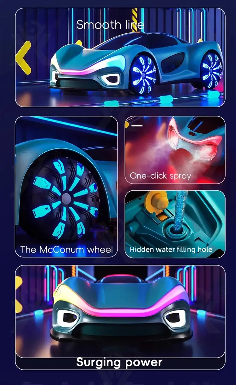 Wholesale 1:16 sci-fi RC car, futuristic design, brilliant headlights & taillights, Mecanum wheels, one-click spray, hidden water inlet, powerful performance, realistic driving experience.