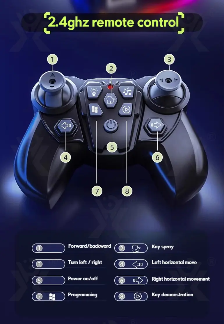 Refill the sci-fi RC car easily through the hidden charging port and enjoy continuous spray effects—combining visual excitement with long-running performance. -