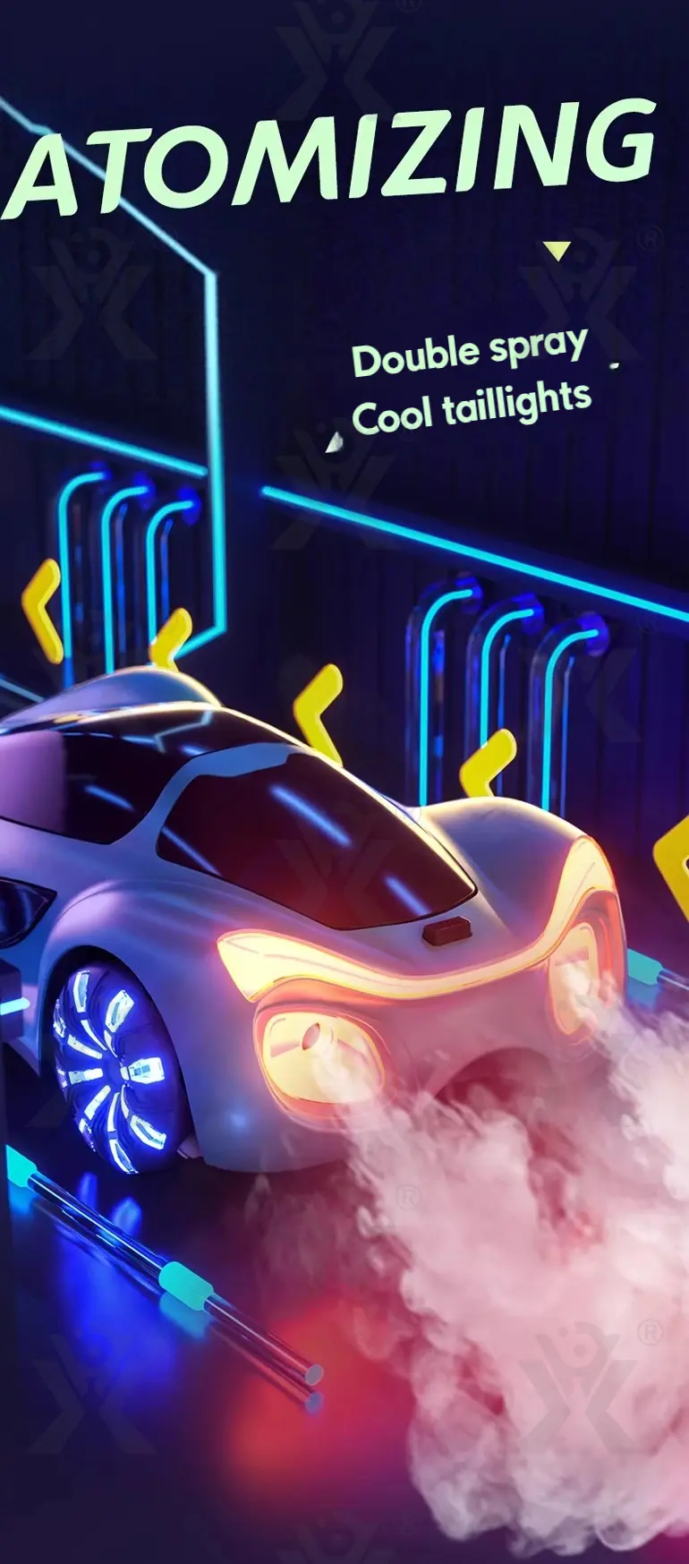 Press to release a realistic mist—adds drama to every race and drift, sparking creative storytelling and immersive play. -