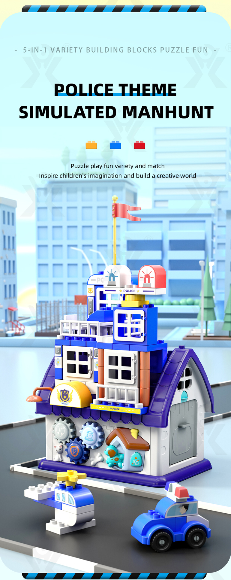Wholesale police station building block toy! Discover our ultimate 5-in-1 police-themed building blocks set—with storage, interactive mat, and educational play—inspiring creativity and keeping fun organised! Supported bulk supply. Contact us now!