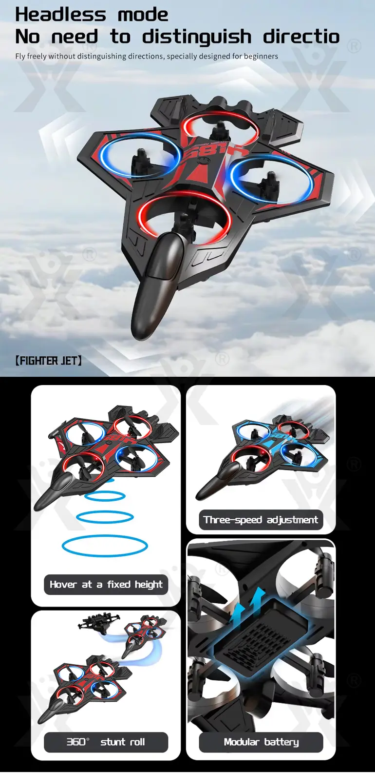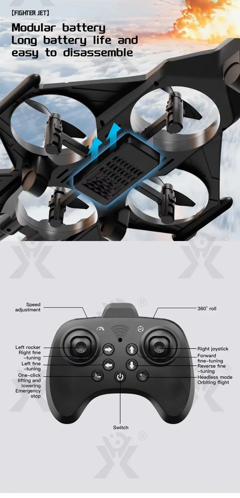 Headless mode eliminates the need to distinguish which direction the nose of the aircraft is pointing. No matter which way the fighter jet faces, pushing the stick forward always moves it away from you. This feature is specially designed for beginners, allowing first-time flyers to focus on the fun of flying without worrying about orientation -