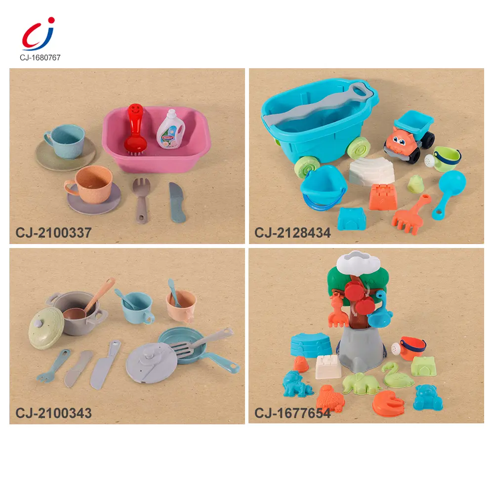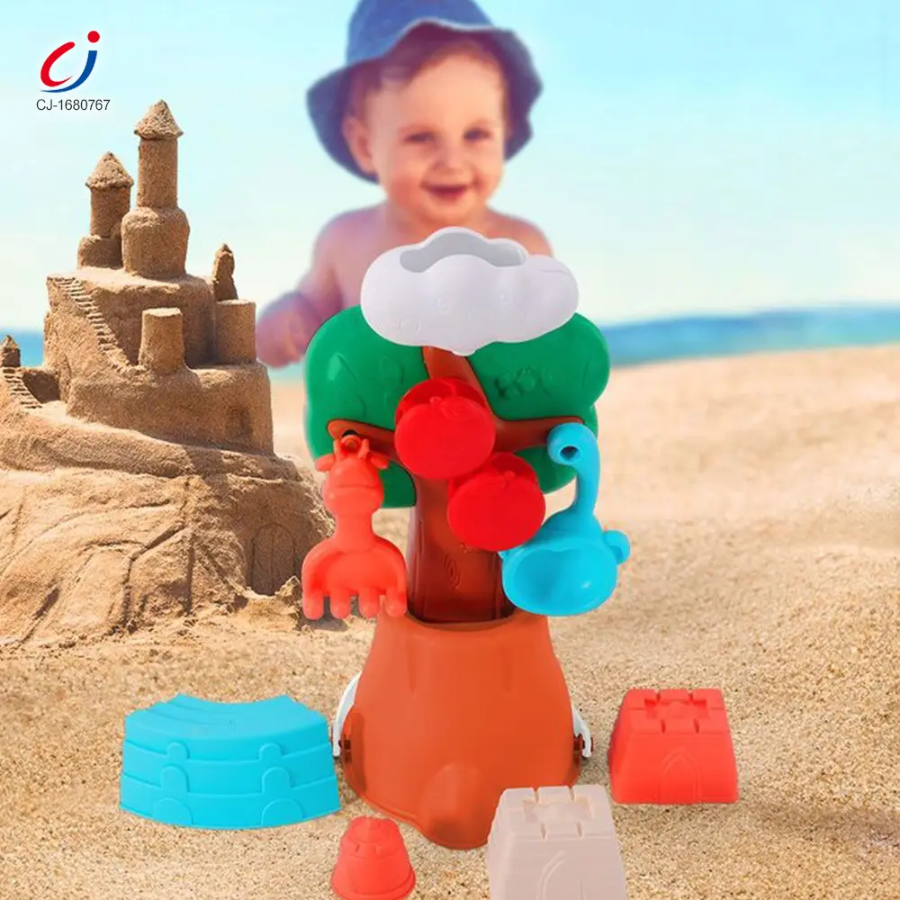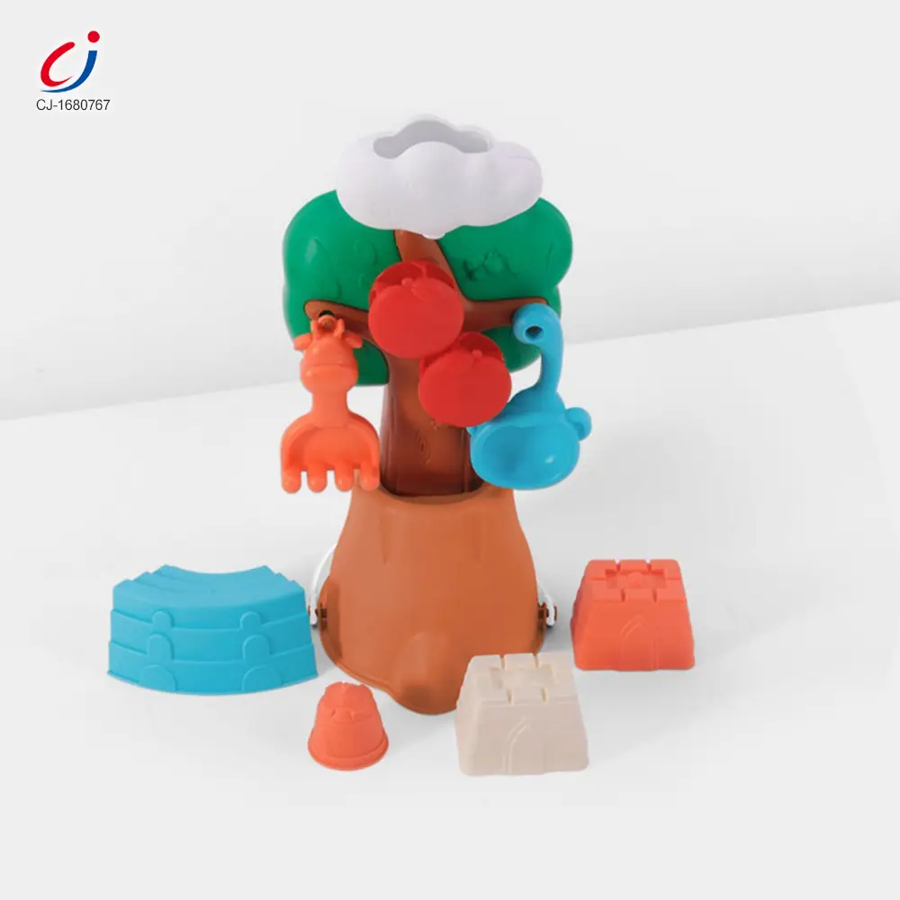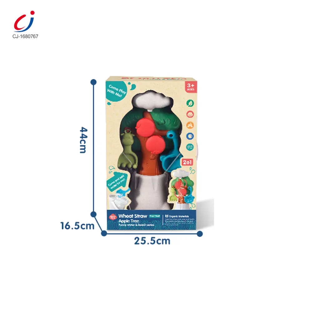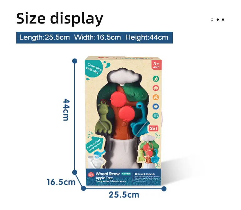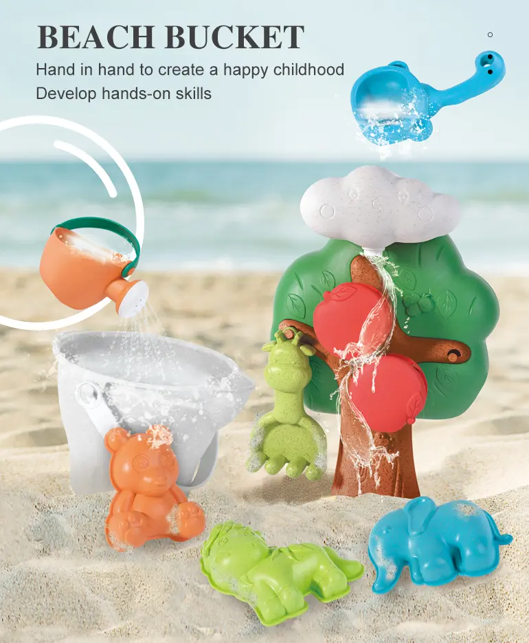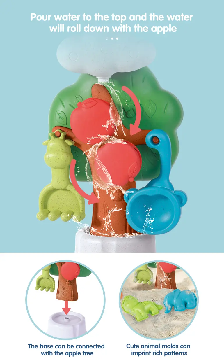 Wholesale wheat straw beach toy. It contains an apple tree beach bucket, water flows with rolling apples, a connectable base, cute animal molds for imprinting, smooth & burr-free, multi-scenario use, and develops hands-on skills.