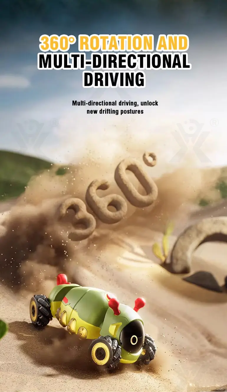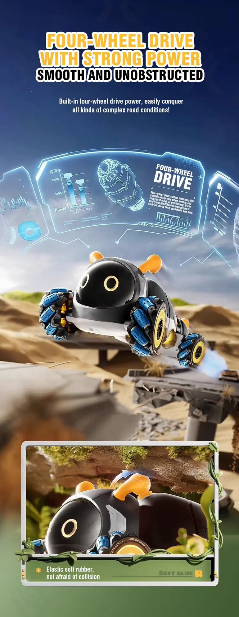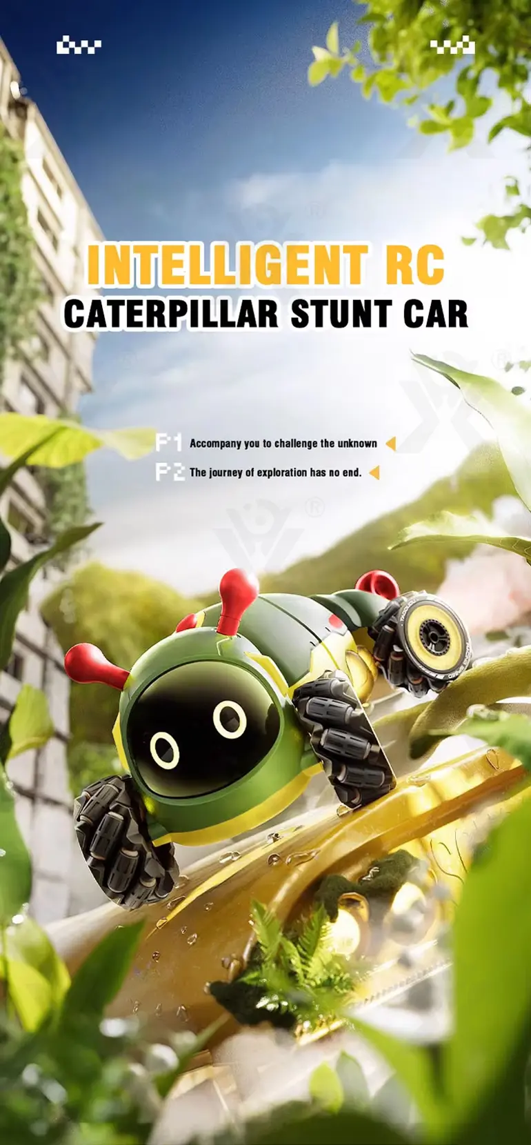 Bionic RC caterpillar stunt car! 4WD power, 360° rotation, dynamic lights & insect sounds. Conquers tough terrain for immersive adventure play.