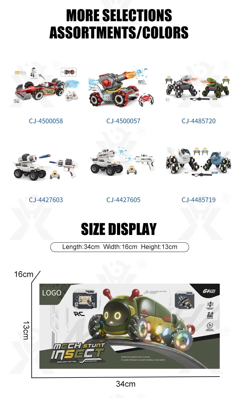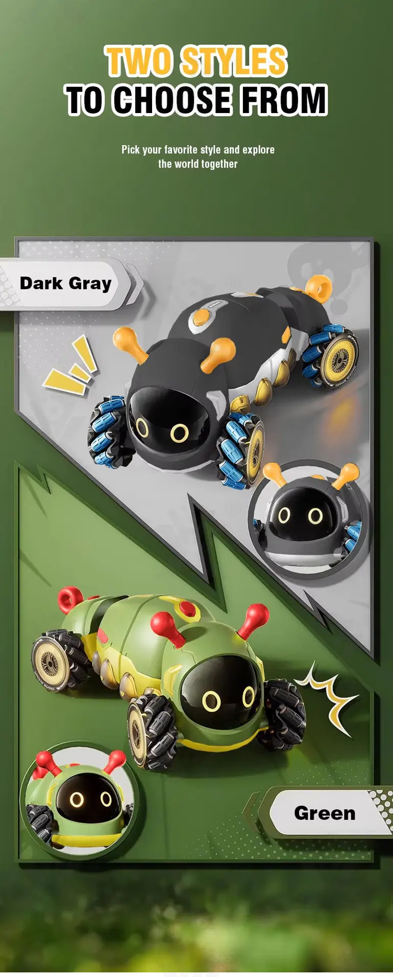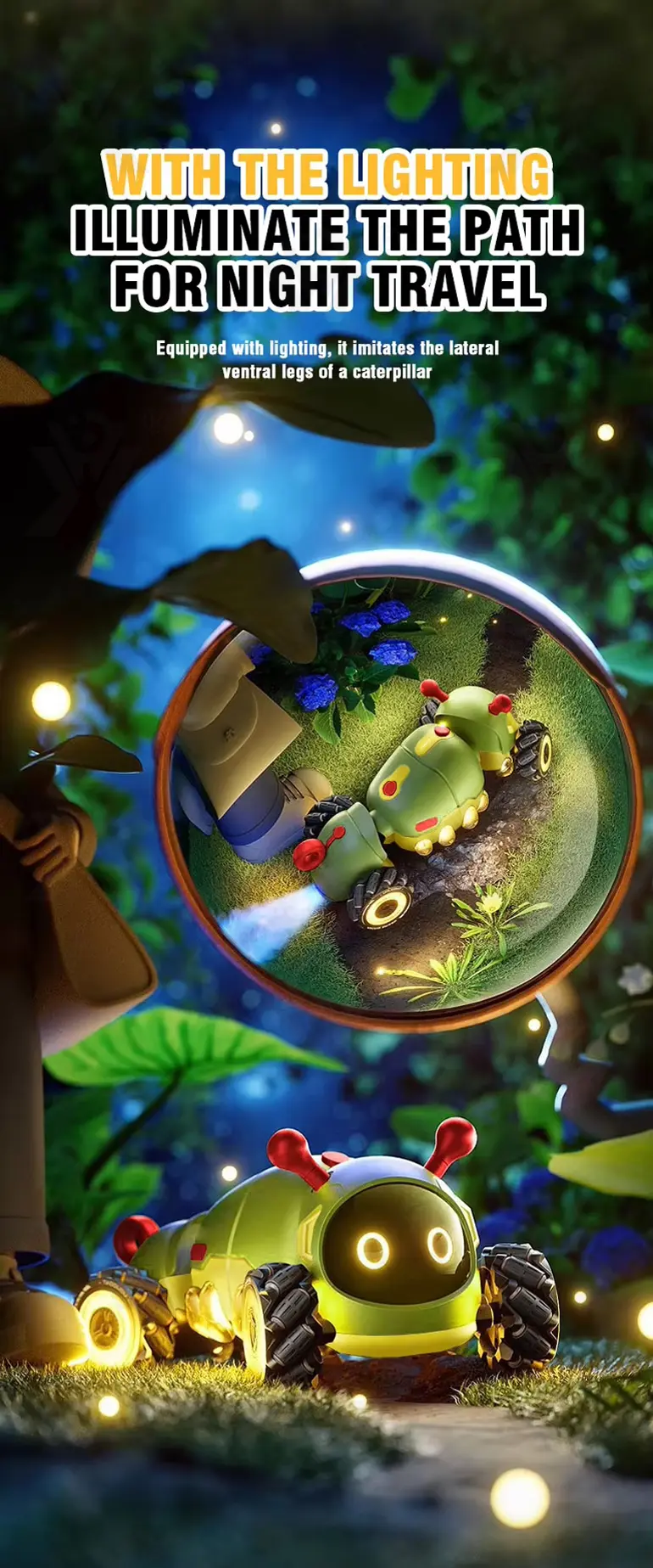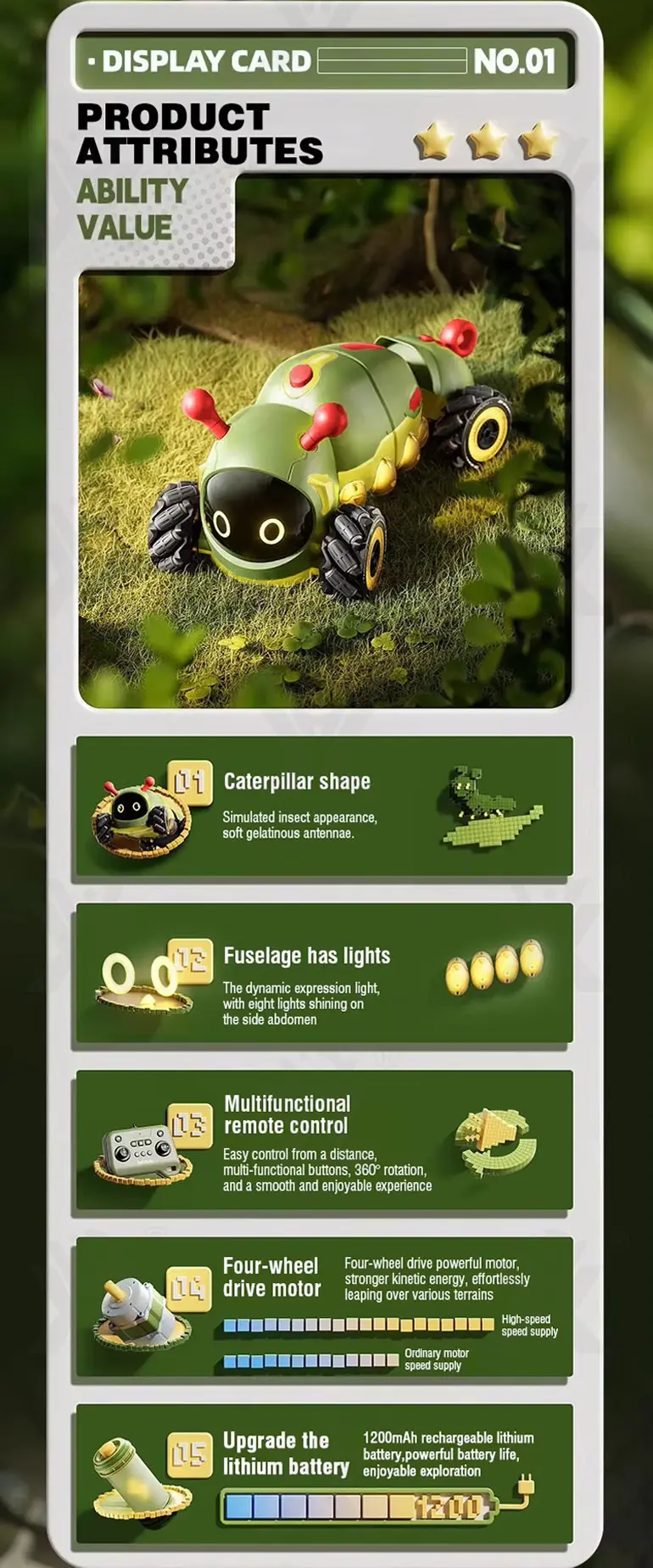 Bionic RC caterpillar stunt car! 4WD power, 360° rotation, dynamic lights & insect sounds. Conquers tough terrain for immersive adventure play.