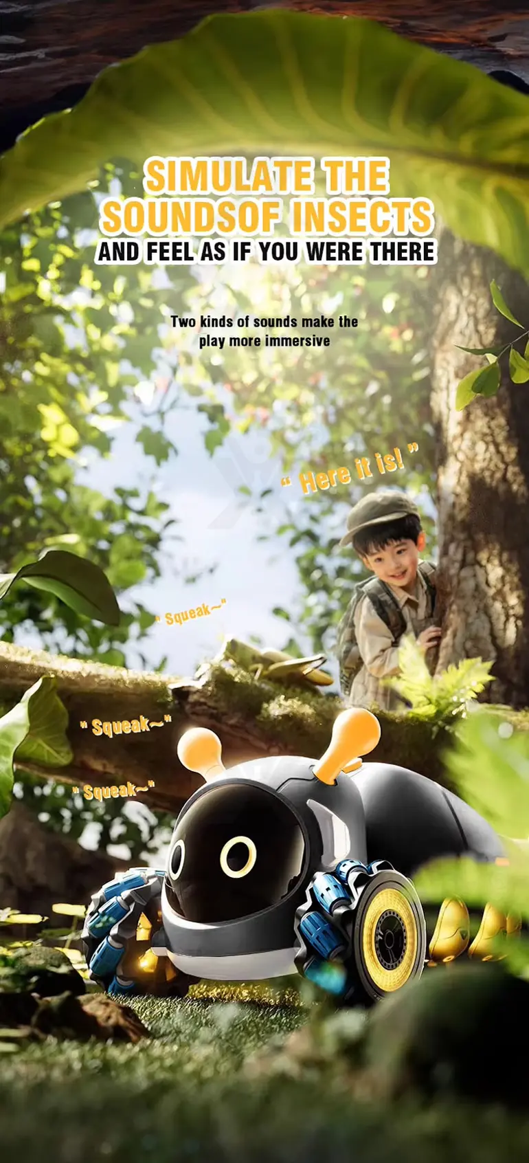 Mimics a real insect with a flexible, twisting body movement. Soft gelatinous antennae help it navigate winding paths and tough terrain effortlessly. -