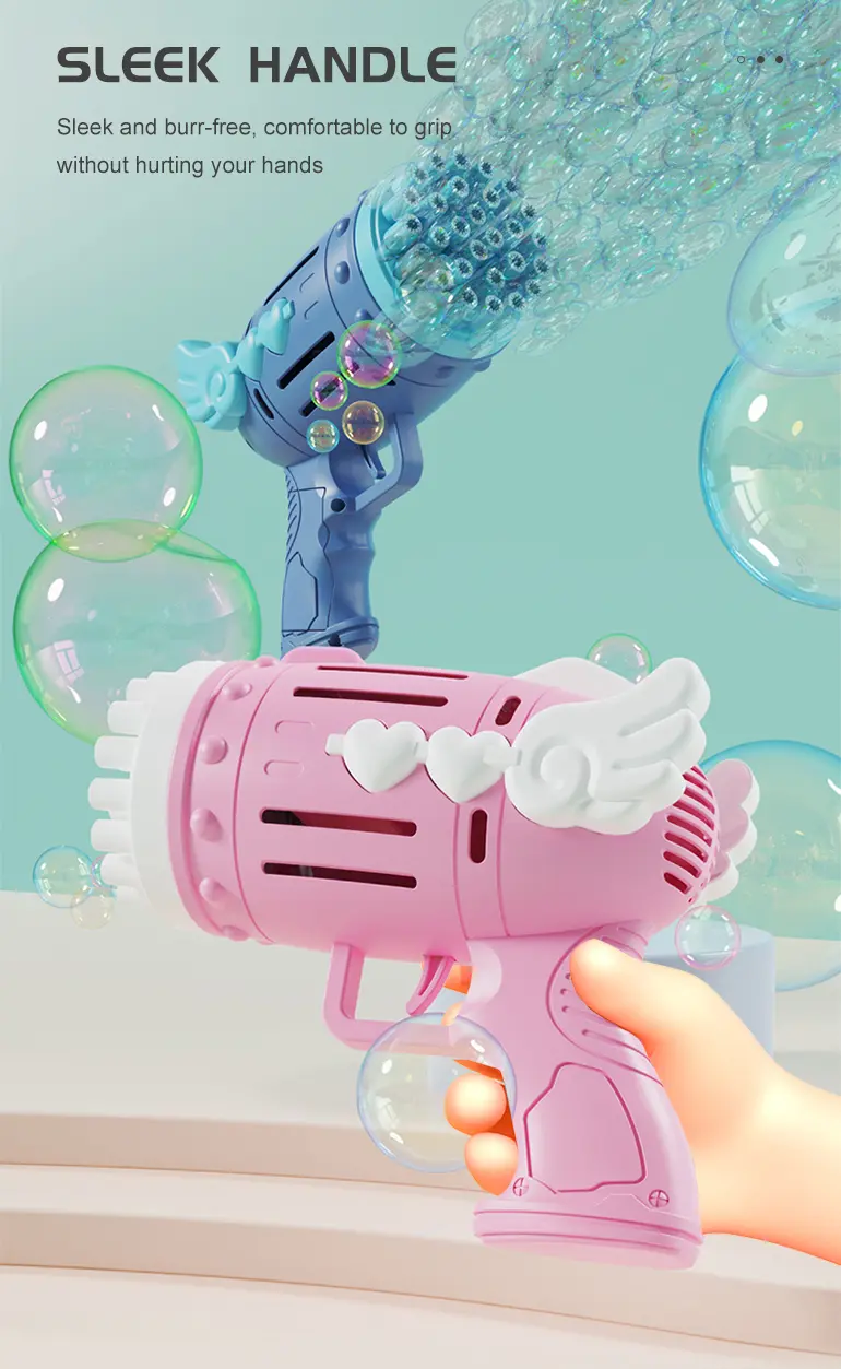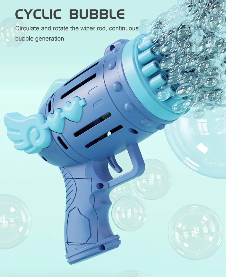 The circulating wiper rod system of the bubble blower gun ensures non-stop bubble flow for uninterrupted outdoor fun.