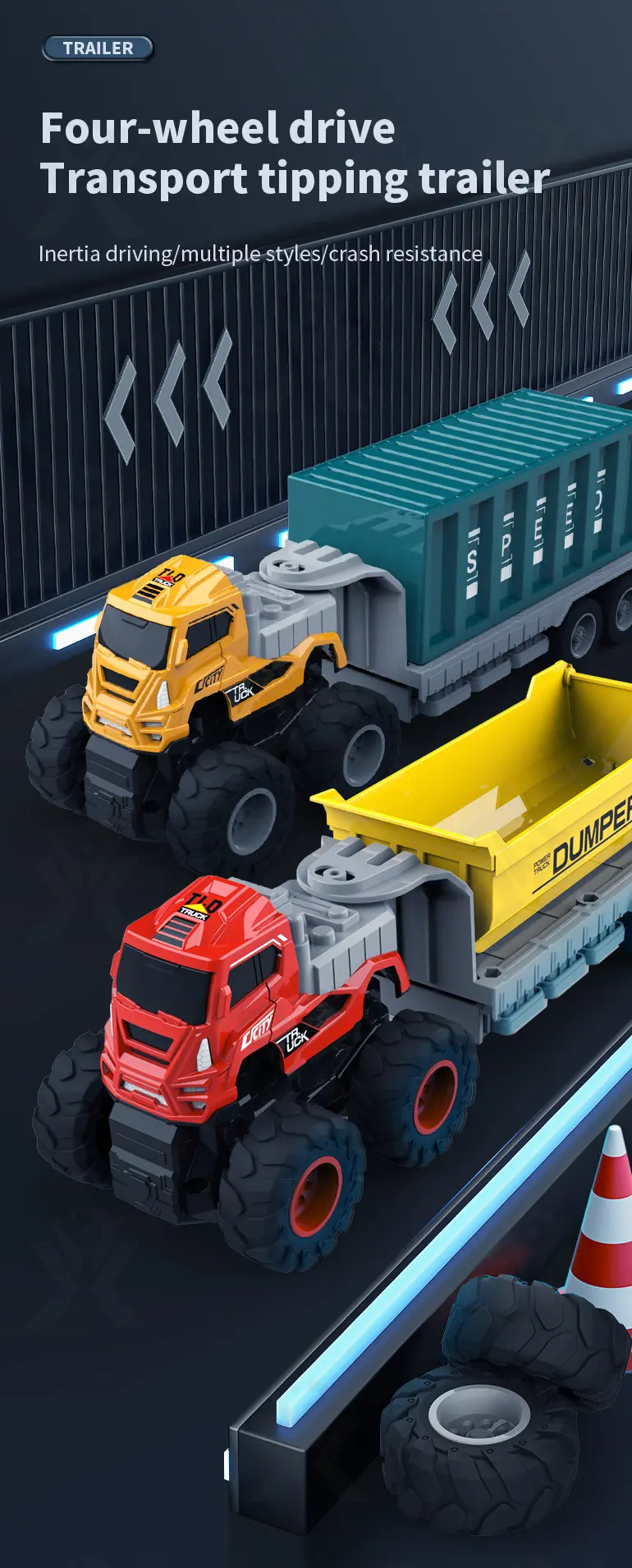 Wholesale inertia engineering truck toy, no battery needed, push-and-go, multiple styles, crash-resistant, dump transport function, fun for kids’ hands-on & team play.