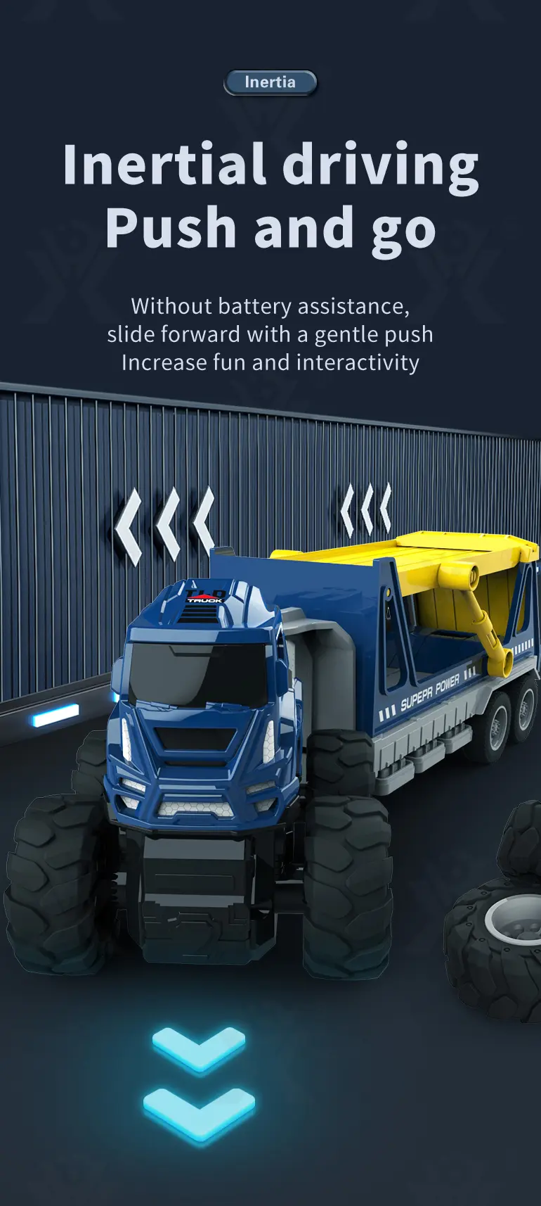 Kids can push these engineering truck toys to watch it roll with inertia power—no batteries, no charging, just simple, eco-friendly fun anytime. -