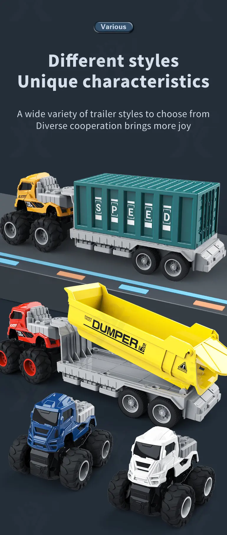Choose from various designs to create a custom trailer team, encouraging collection, coordination, and creative fleet storytelling.