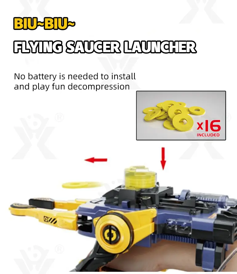 It features a flying saucer style with two robotic arms for interactive and imaginative play scenarios.
