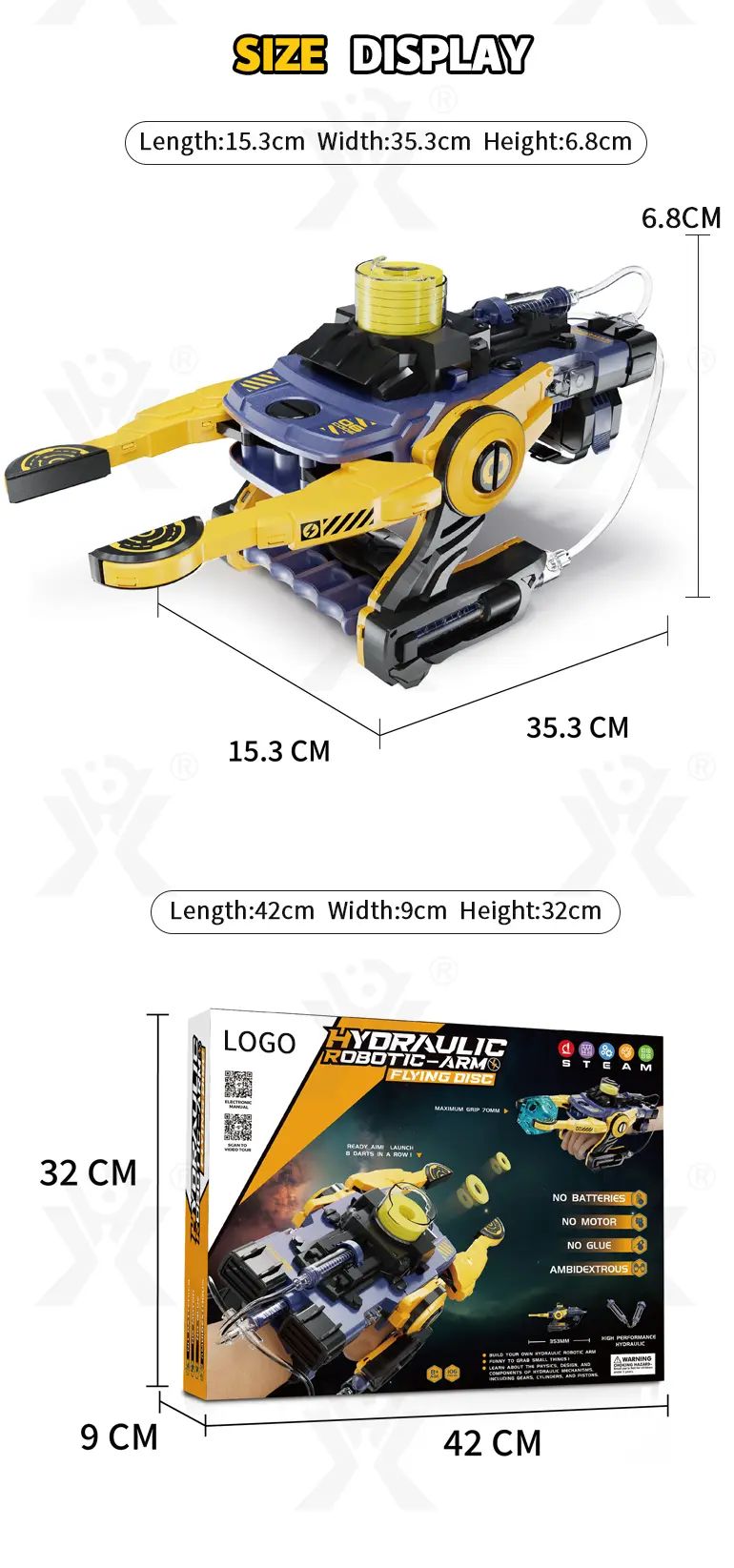 Our hydraulic manipulator toy introduces physics and mechanical concepts through practical assembly and hydraulic experimentation.