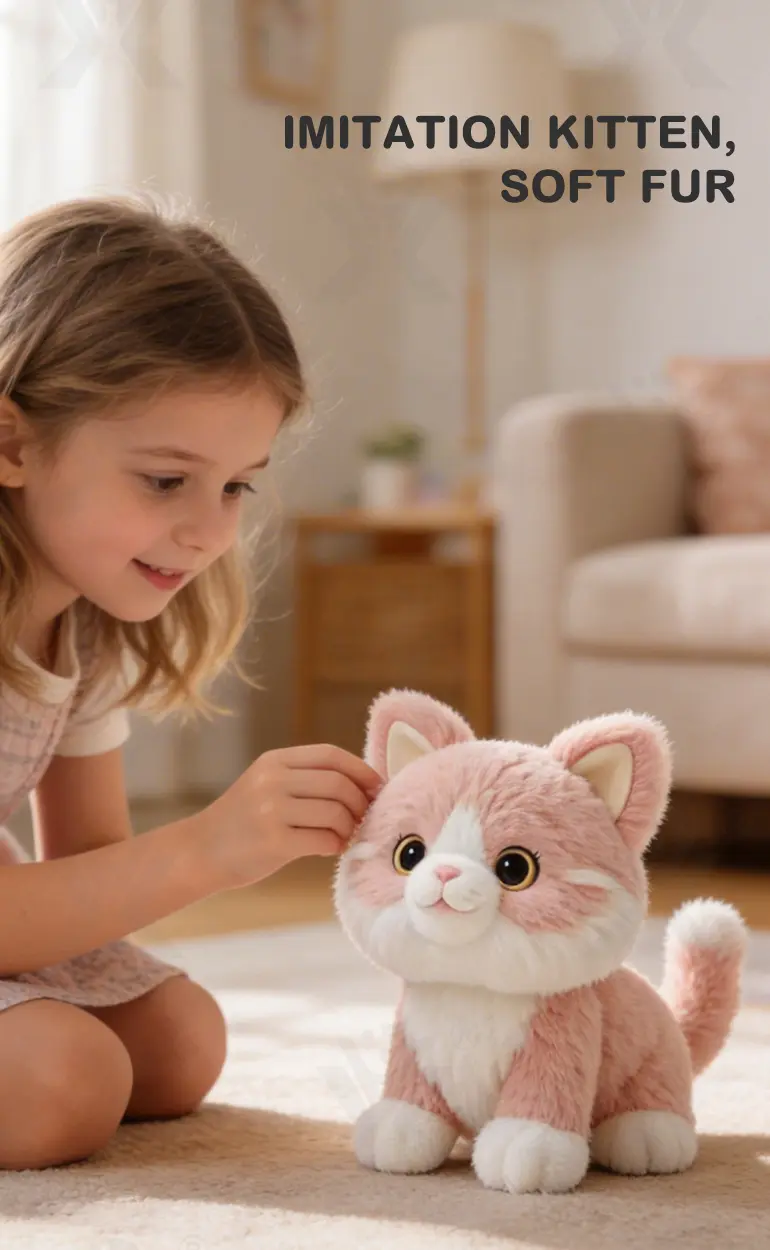 Covered in soft, high-quality imitation fur, this plush kitten is gentle to the touch and pleasant to hold. Unlike hard plastic toys, the plush texture invites cuddling and nurturing behavior. The lifelike kitten design—with cute facial features and realistic proportions—appeals to children’s natural affection for animals, making it a comforting companion at home or during travel.