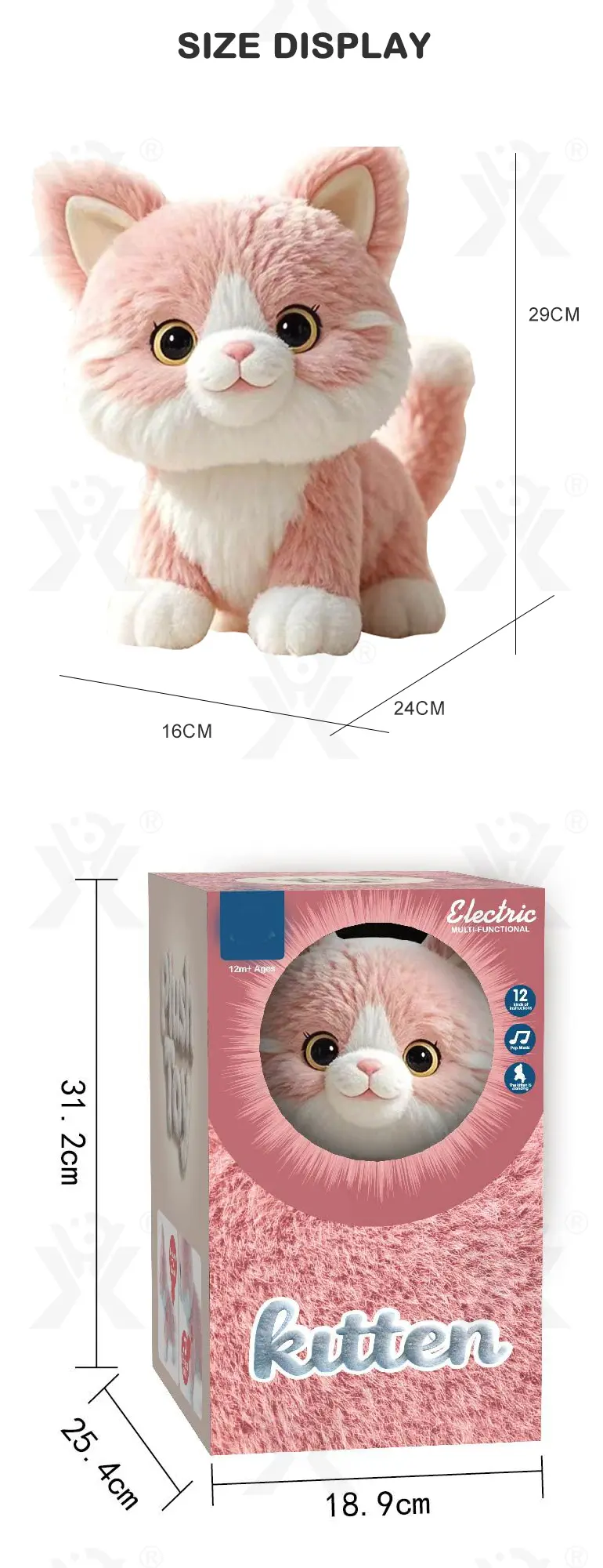 Wholesale interactive plush cat with 12 instructions—sings, crawls & responds to commands, soft fur for cuddly interactive play.