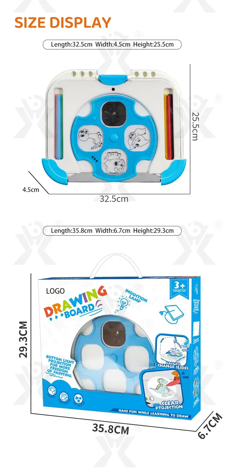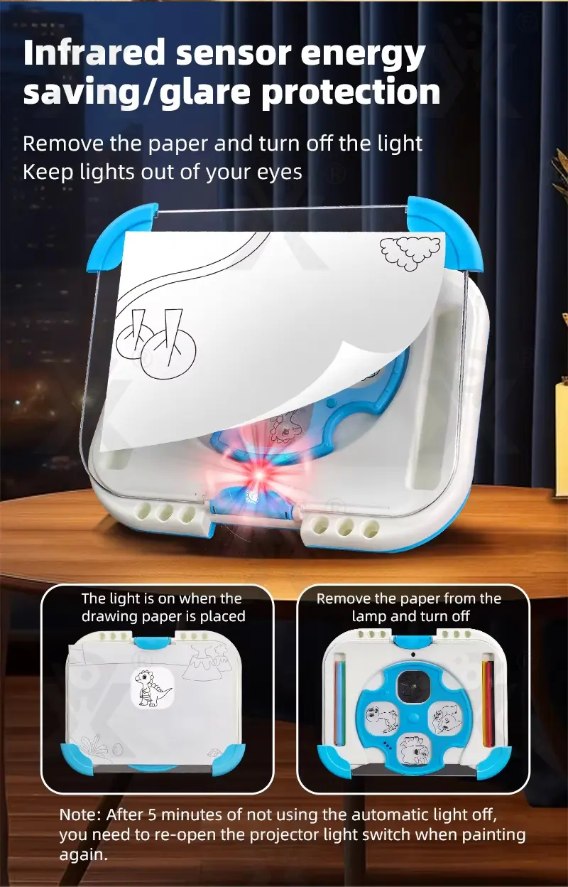 Wholesale intelligent projection drawing board, bottom projection imaging, infrared sensor energy-saving, 64 projection patterns, 6 theme scenes, auto light-off, inspires artistic creativity.