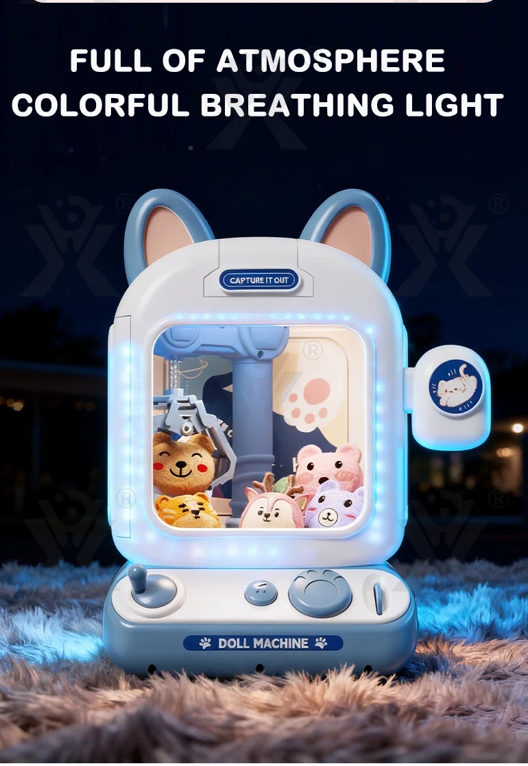 Wholesale mini kitten doll machine, dual joystick operation, colorful breathing light, upgraded music, dual power supply, claw game, develops hand-eye coordination & focus.