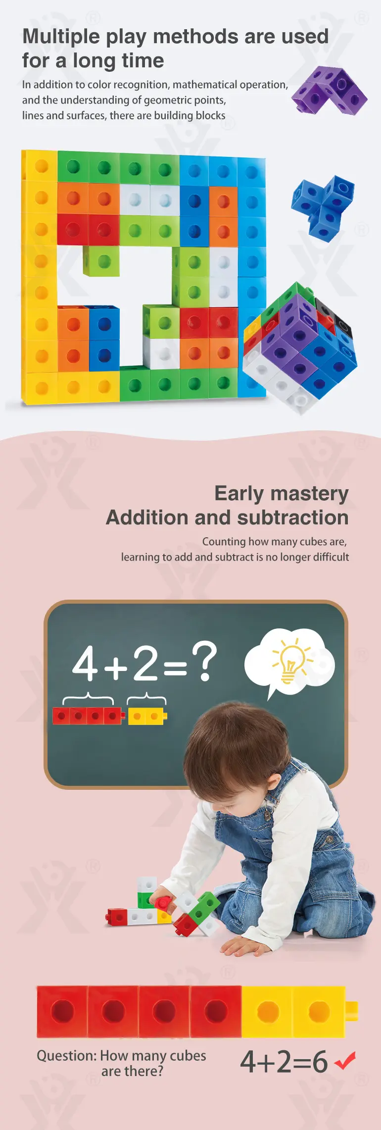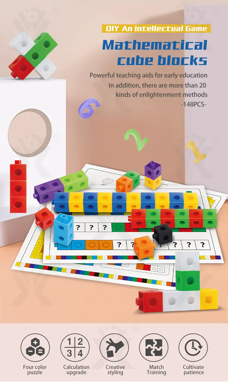 Wholesale linking building block toy set, with 148-pc math cube blocks! 20+ enlightenment methods for addition/subtraction, geometry & color matching. Develops logic & patience through play. Large-scale supply available. Contact us to get a factory price now!