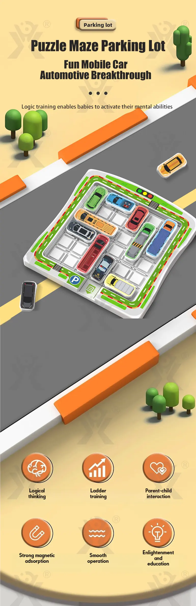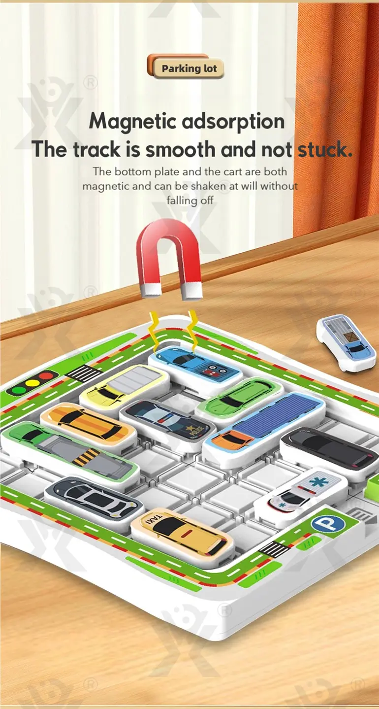 Wholesale puzzle parking lot game, UV printed car recognition, smooth rounded edges & strong magnets, progressive levels, builds logical thinking & patience, parent-child screen-free interaction.