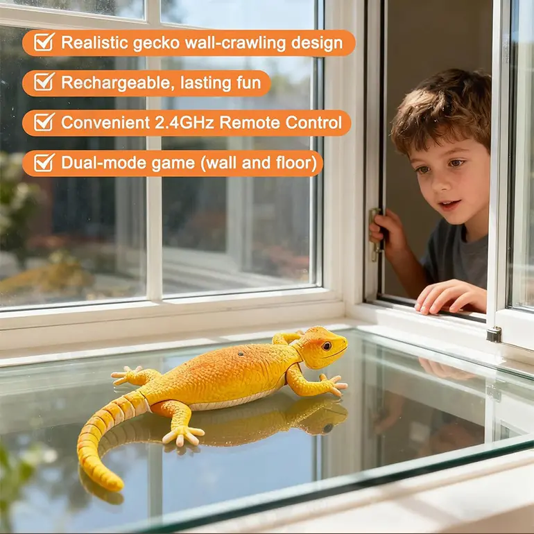 Our RC gecko toy can climb walls or drive on floors, offering versatile play options for different environments.