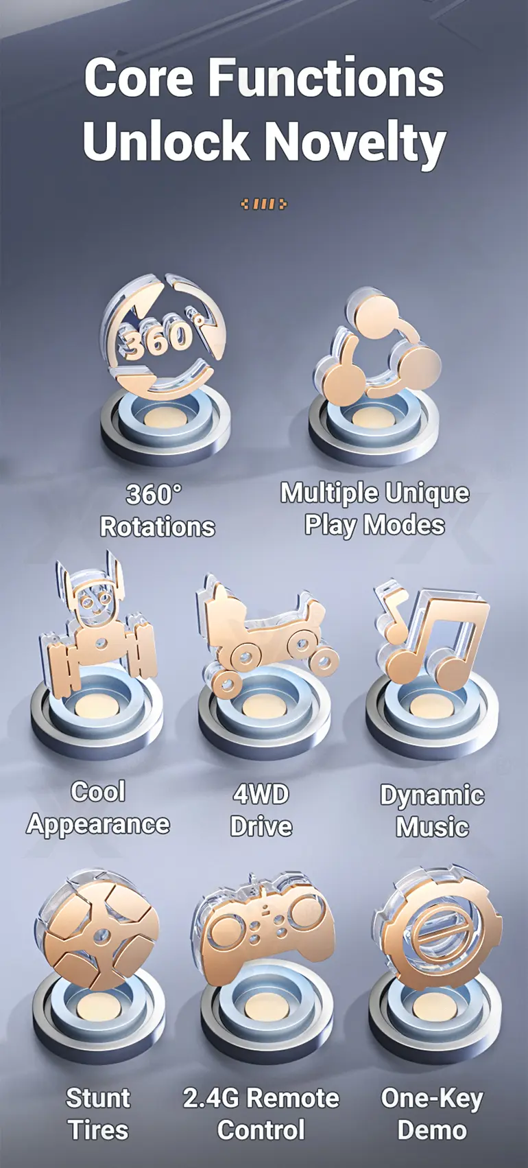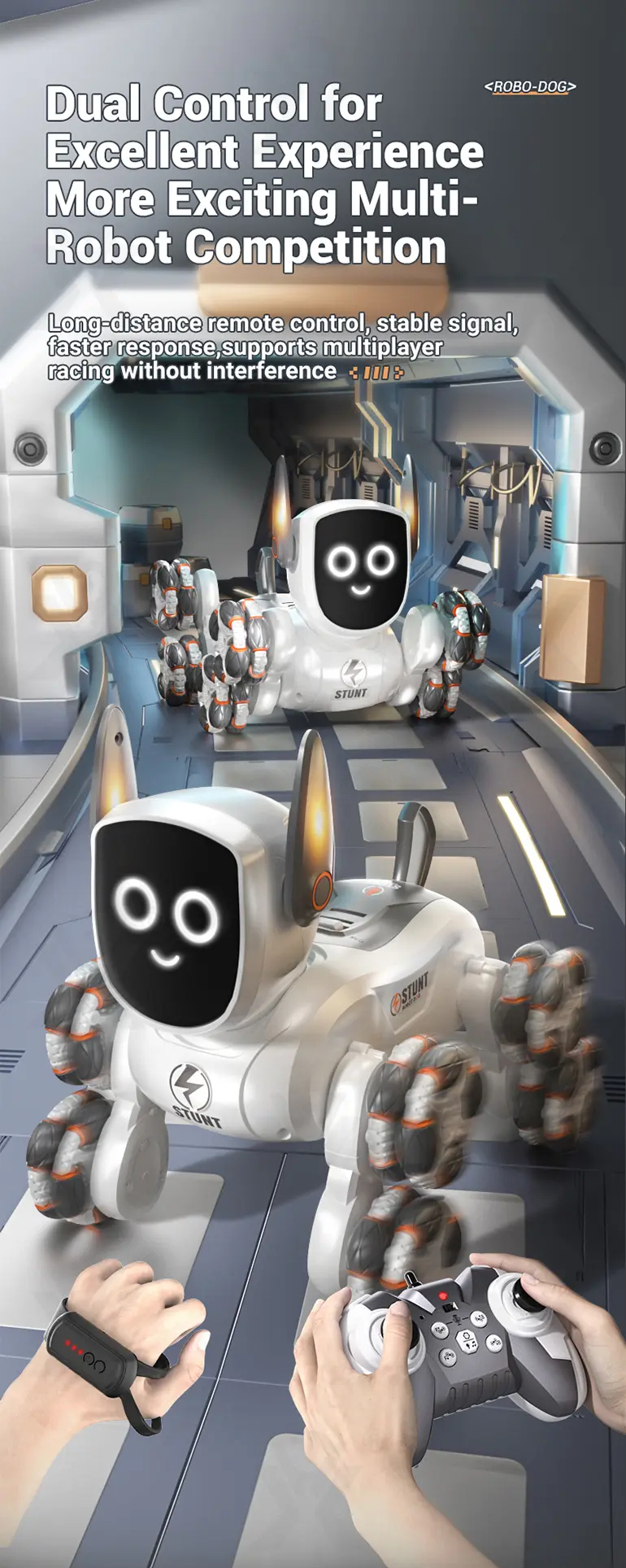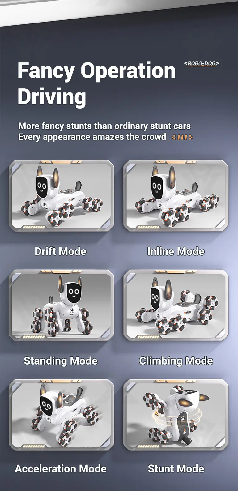 - 360° Stunt Drift & Rotation: The 8-wheeled stunt robot dog toy can perform exciting 360° spins and drifts, offering thrilling stunt driving and endless interactive fun for tech-savvy kids.