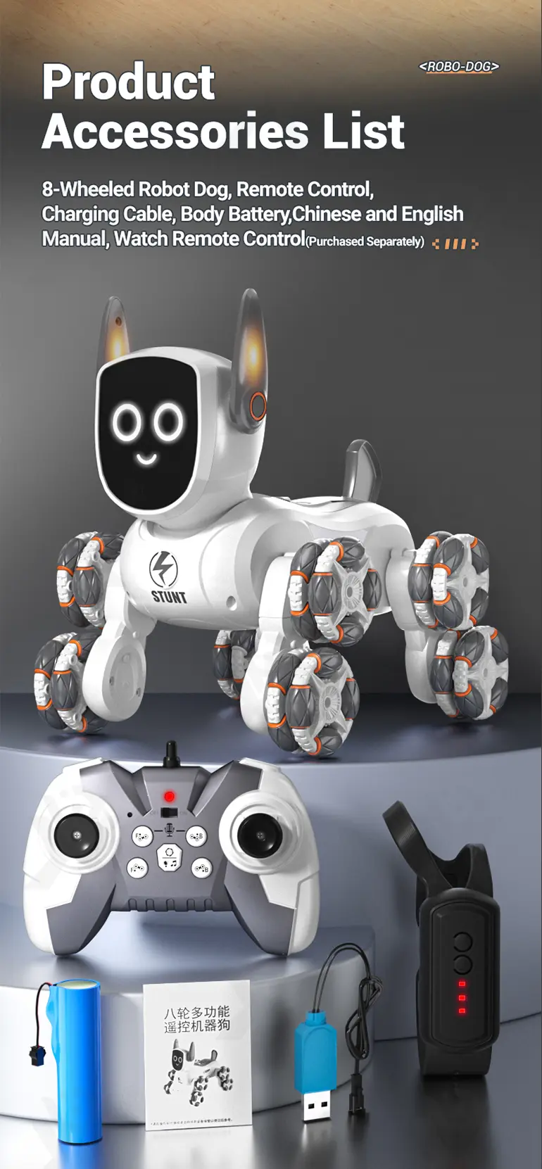 Wholesale 8-Wheeled Stunt Robot Dog Toy 4WD – Robot Toy Companies