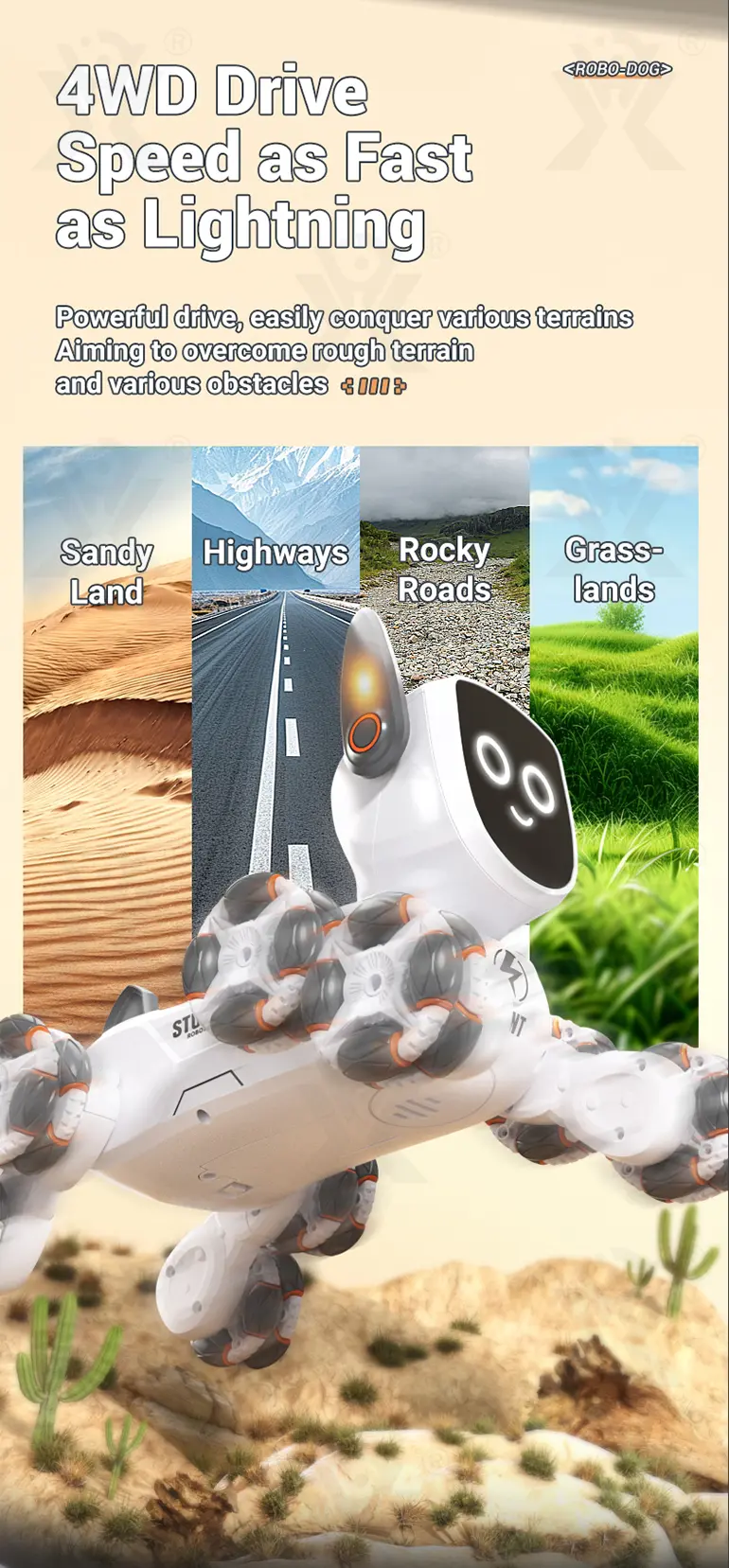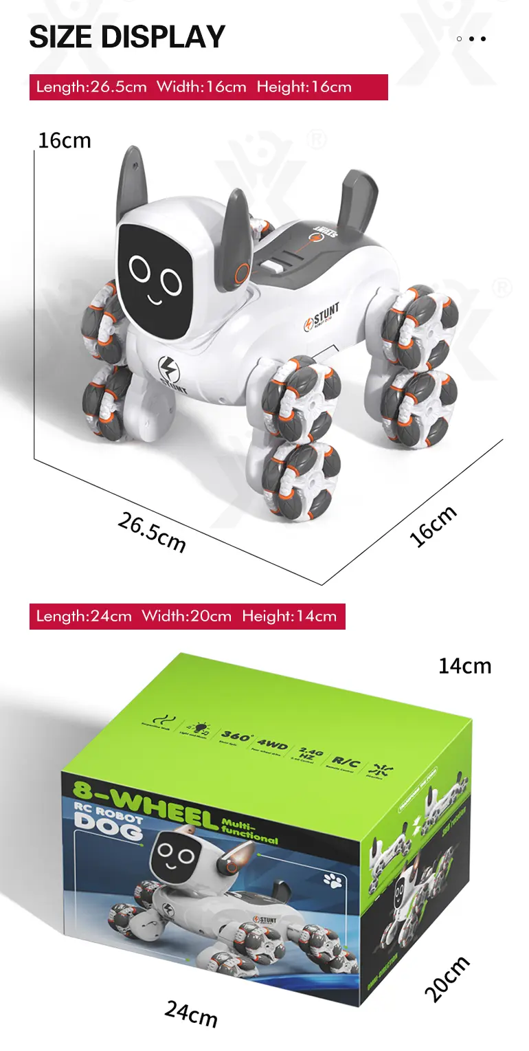 - Dynamic Music & Cool Appearance: Our 8-wheeled stunt robot dog toy features built-in dynamic sound effects and a futuristic, eye-catching design that enhances immersive play experiences.