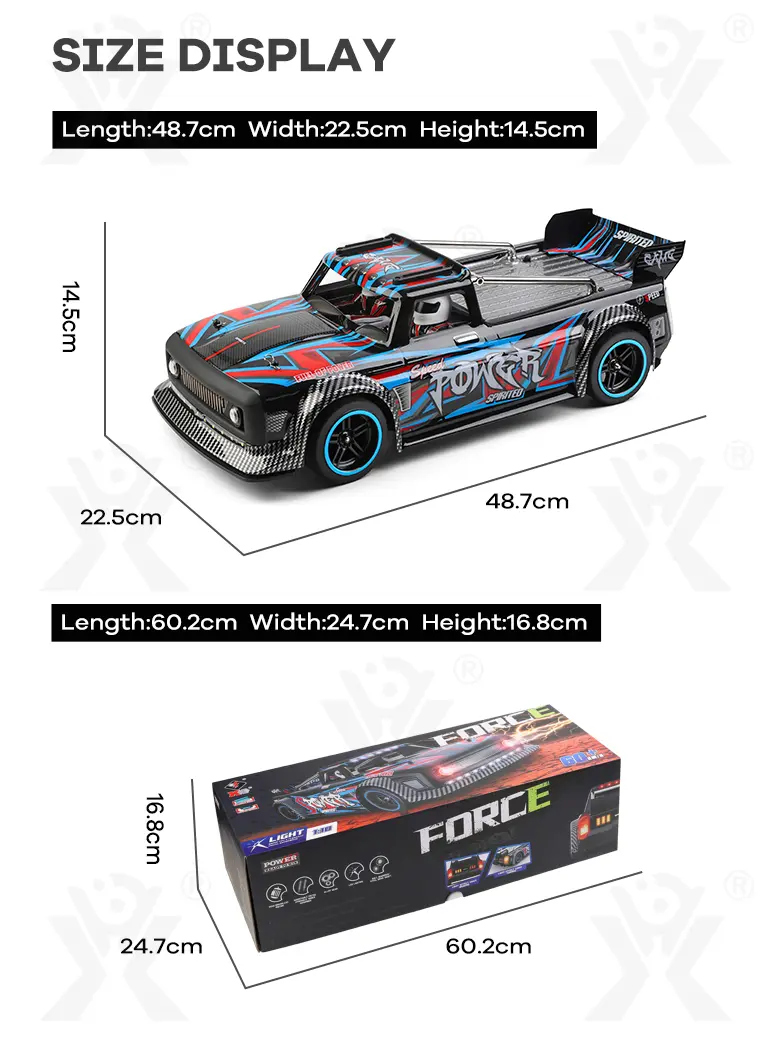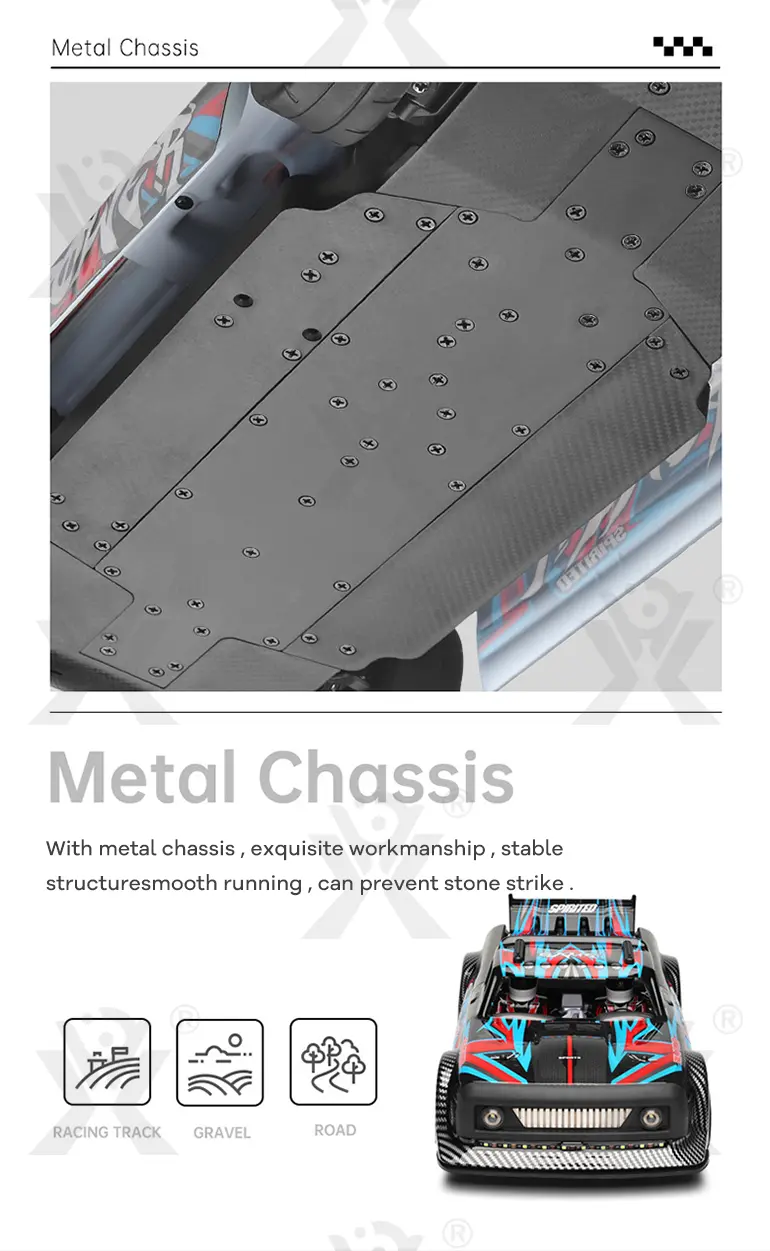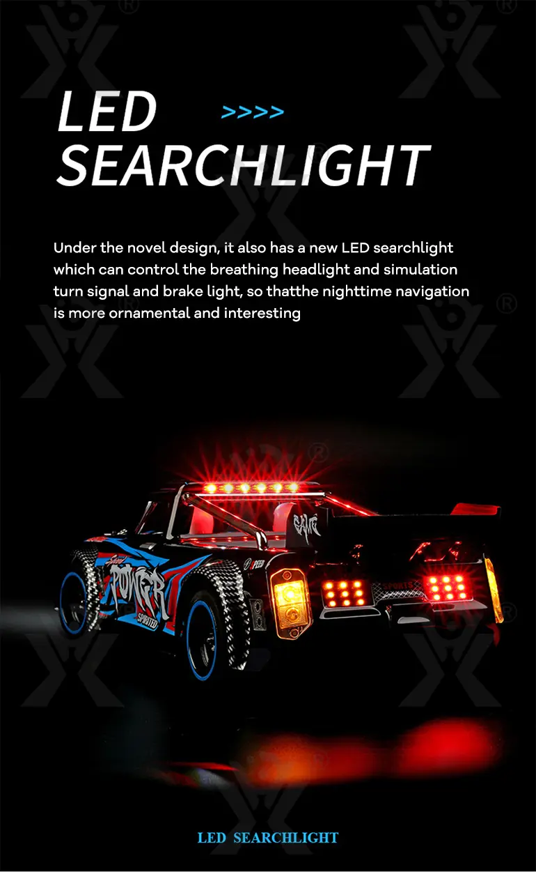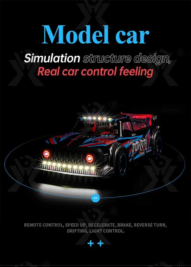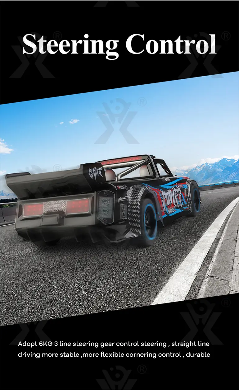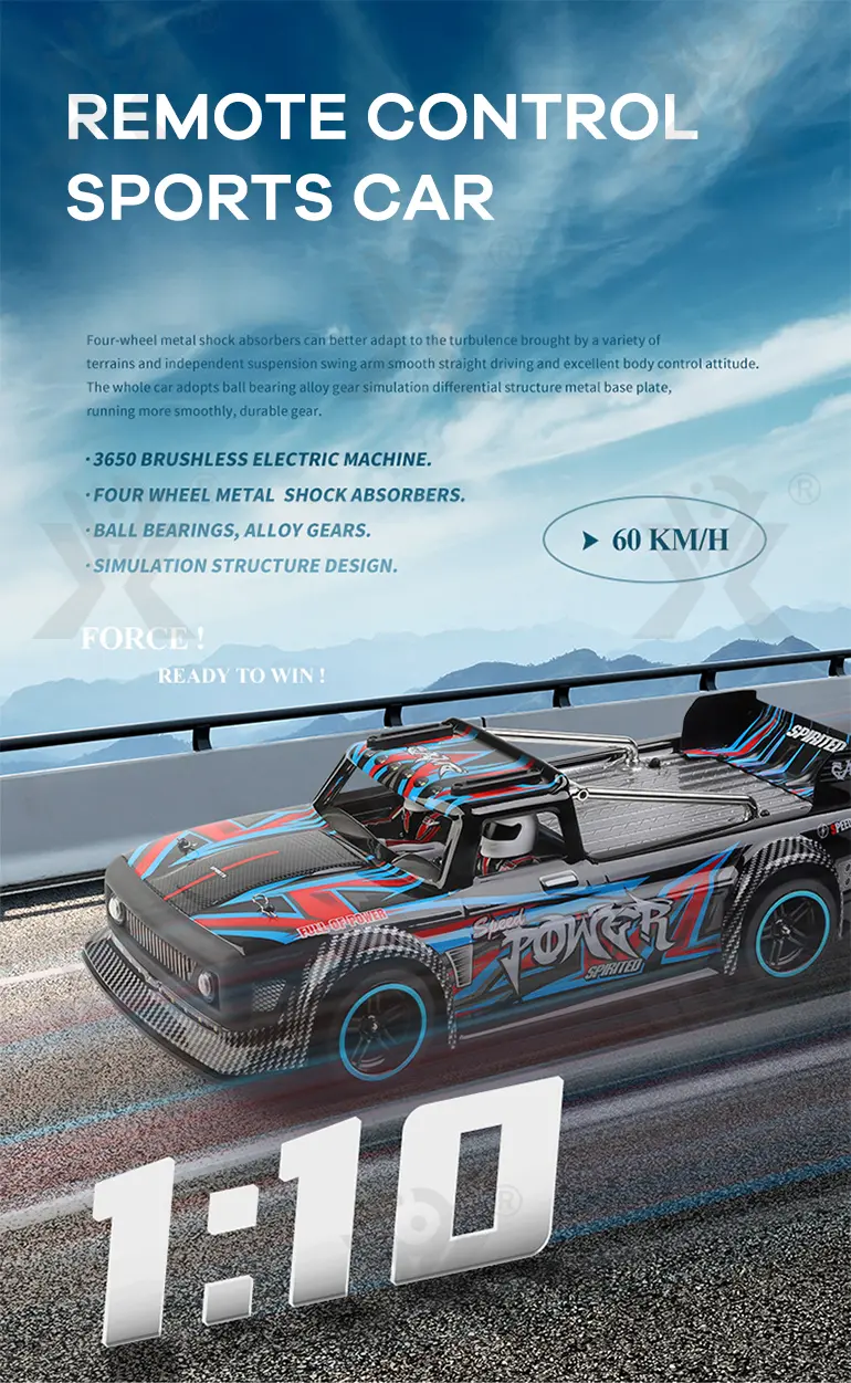 The high-power brushless motor of our brushless RC sports car delivers a top speed of 60 km/h for thrilling acceleration and racing performance.
