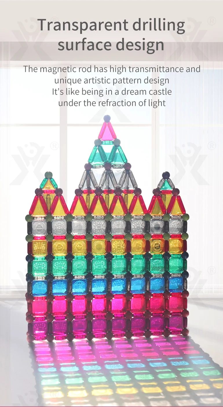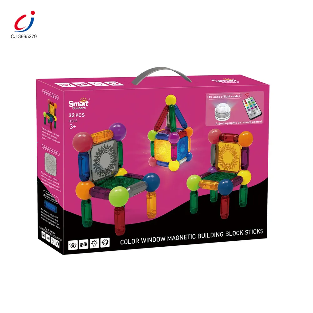 Wholesale color window magnetic toy. This toy features a remote-controlled color magnetic building set with multi-light modes and strong magnets, sparking creativity and STEM potential in children.