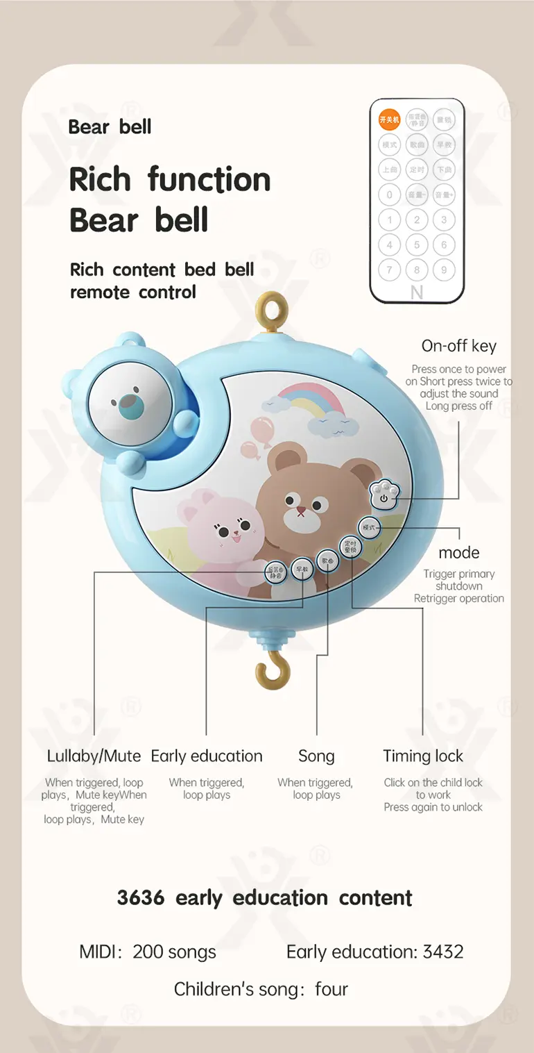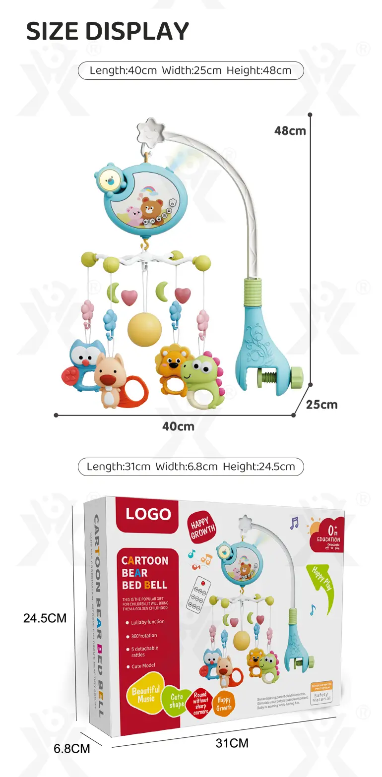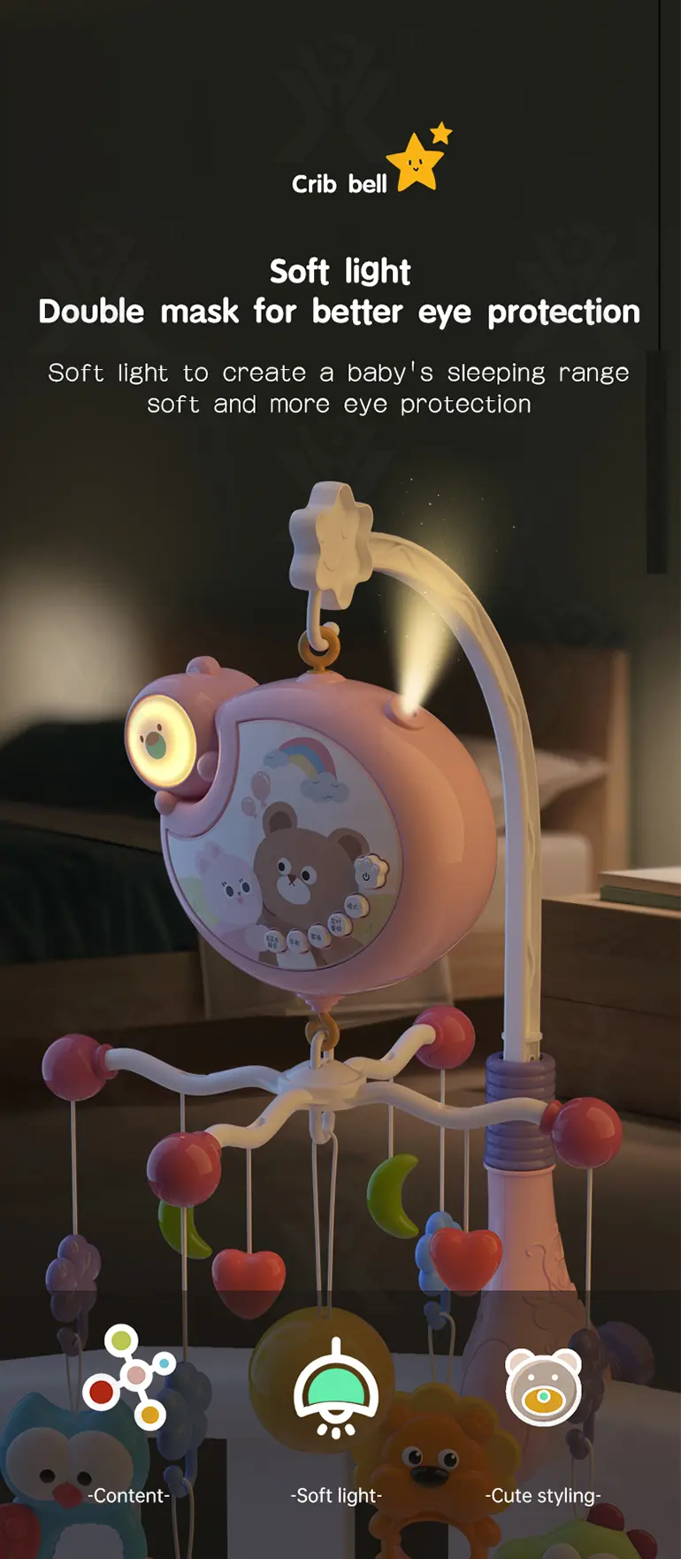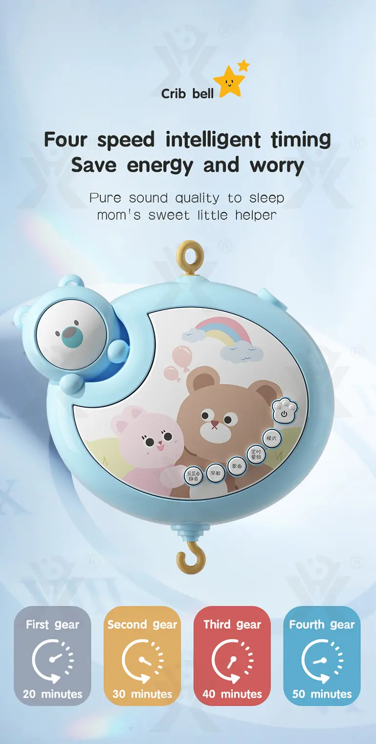 Bear Music Light Crib Mobile Bell – 45° Scientific Angle & 360° Rotating Chase