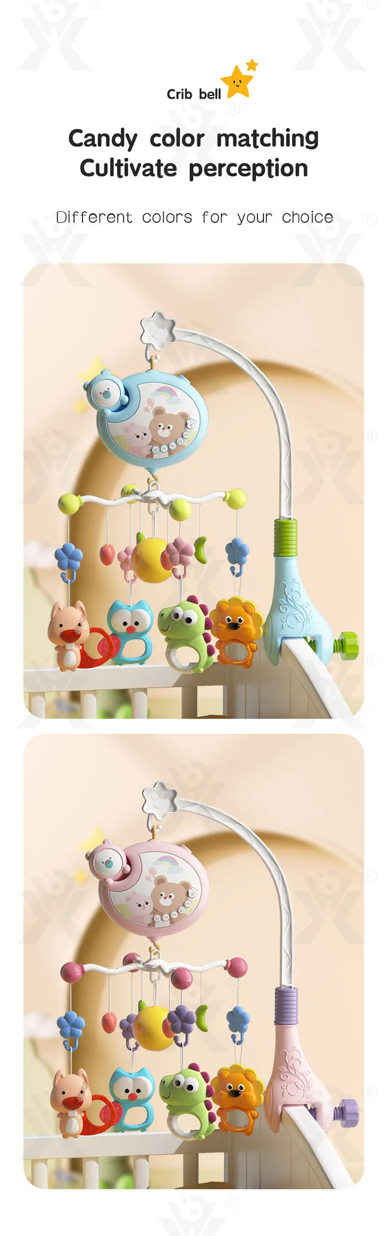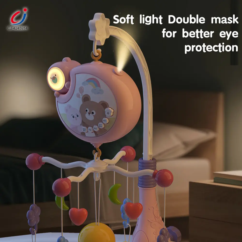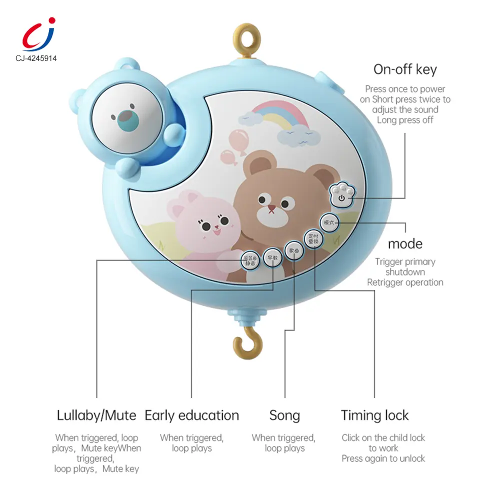 Wholesale musical crib mobile for babies. Bear music light crib bell, soft eye-protecting light, 45° scientific angle, 360° rotating chase, 4-speed smart timer (20-50min), gentle music soothes baby to sleep.