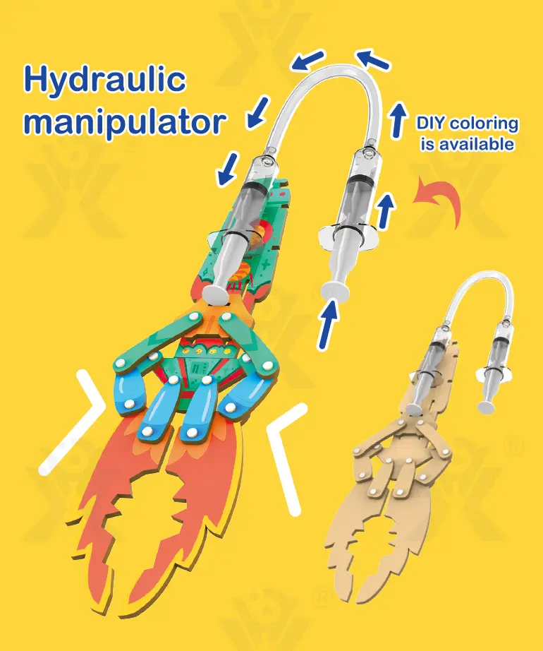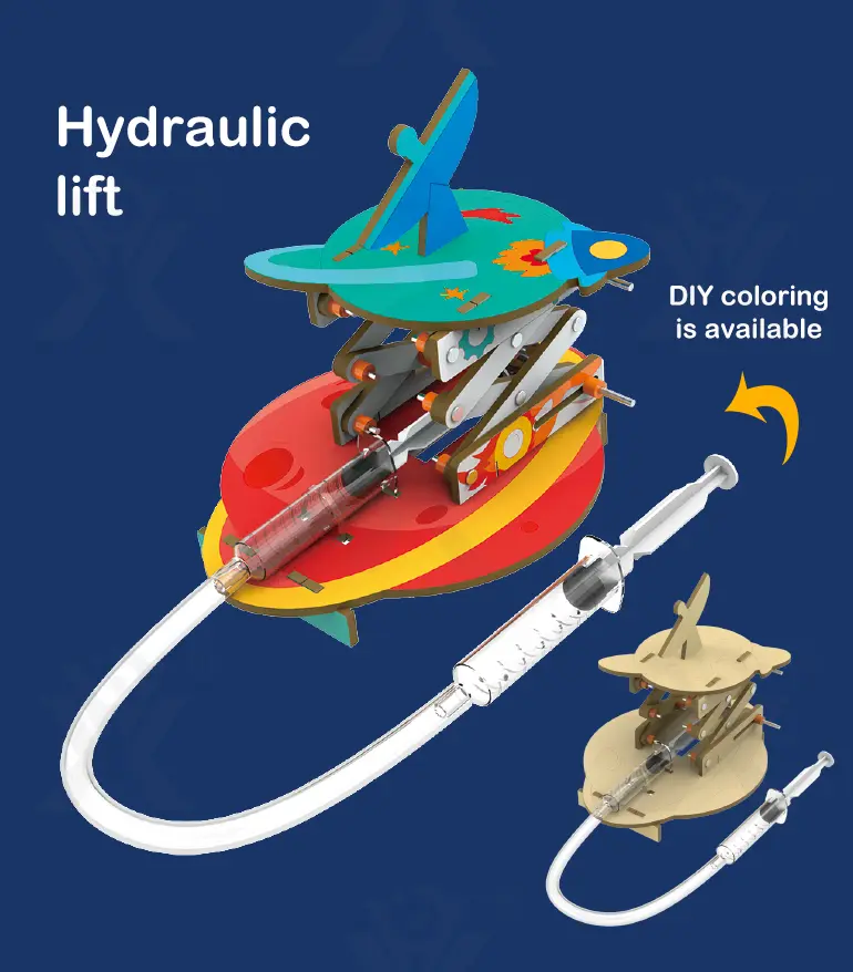 Build four real hydraulic machines from one kit! Explore fluid power with battery-free models that teach engineering through hands-on play. -