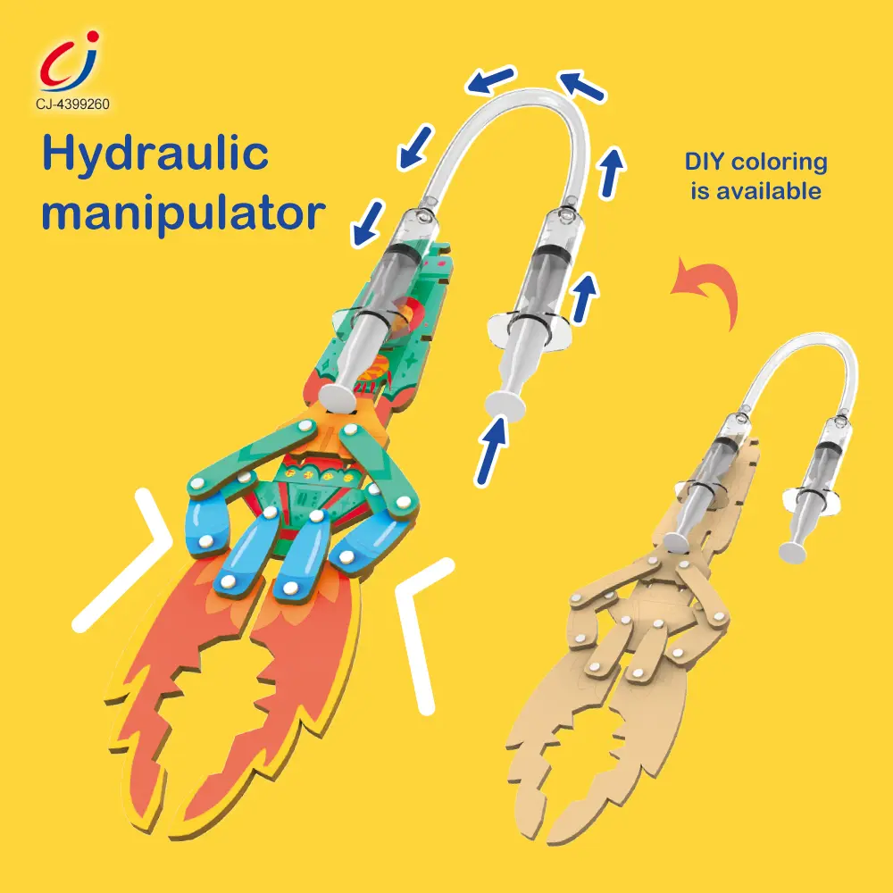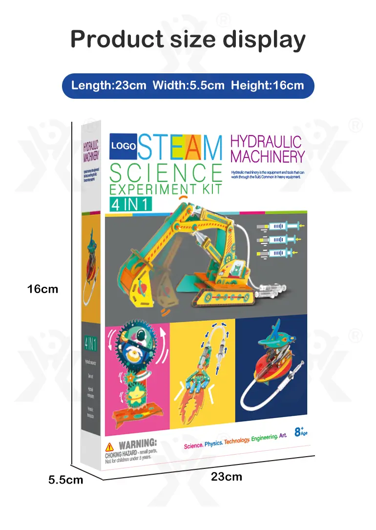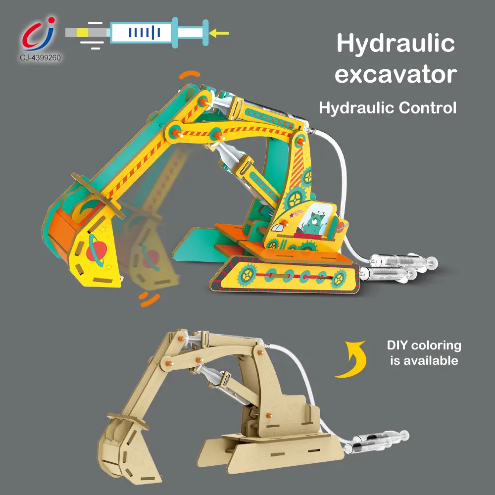 Wholesale DIY hydraulic machinery 4-in-1 STEM set, excavator/manipulator/gear set/lift, battery-free, customizable coloring, develops scientific exploration & hands-on skills.