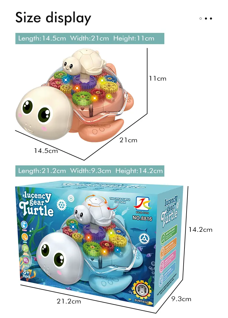 Wholesale electric gear turtle toy, colorful lights, dynamic music, gear rotation, safe, eco-friendly ABS material, fun learning companion for kids.