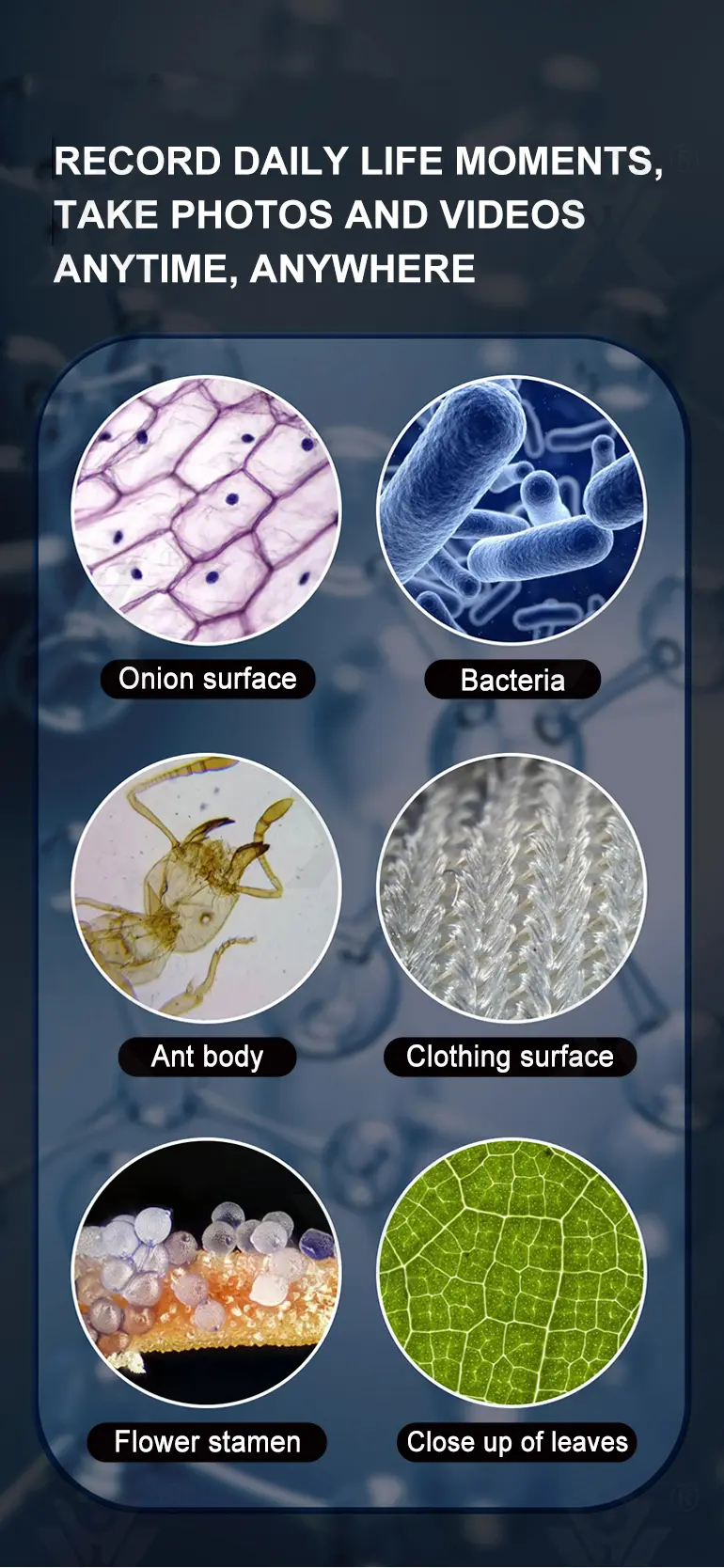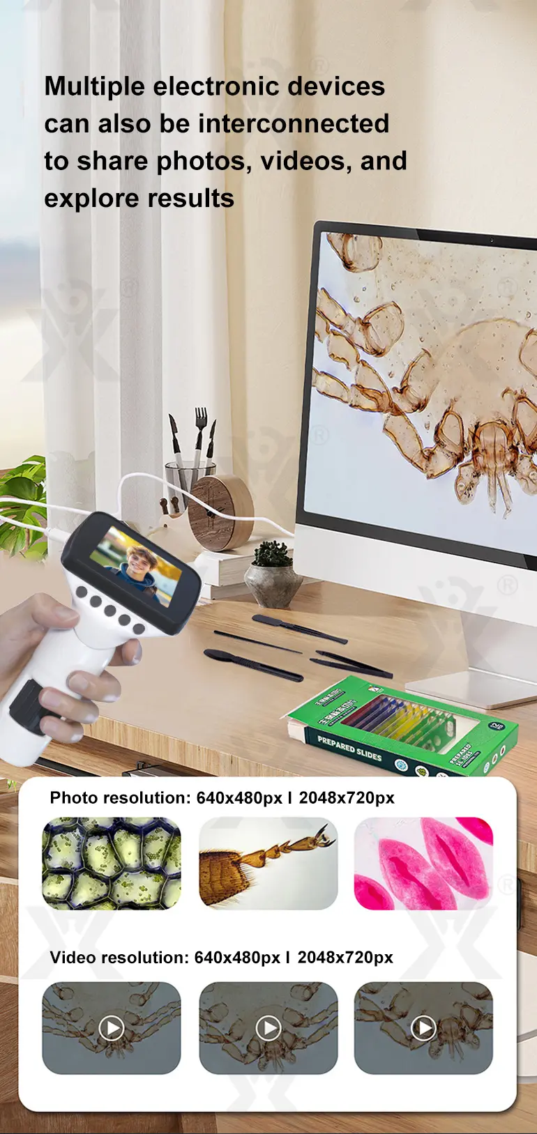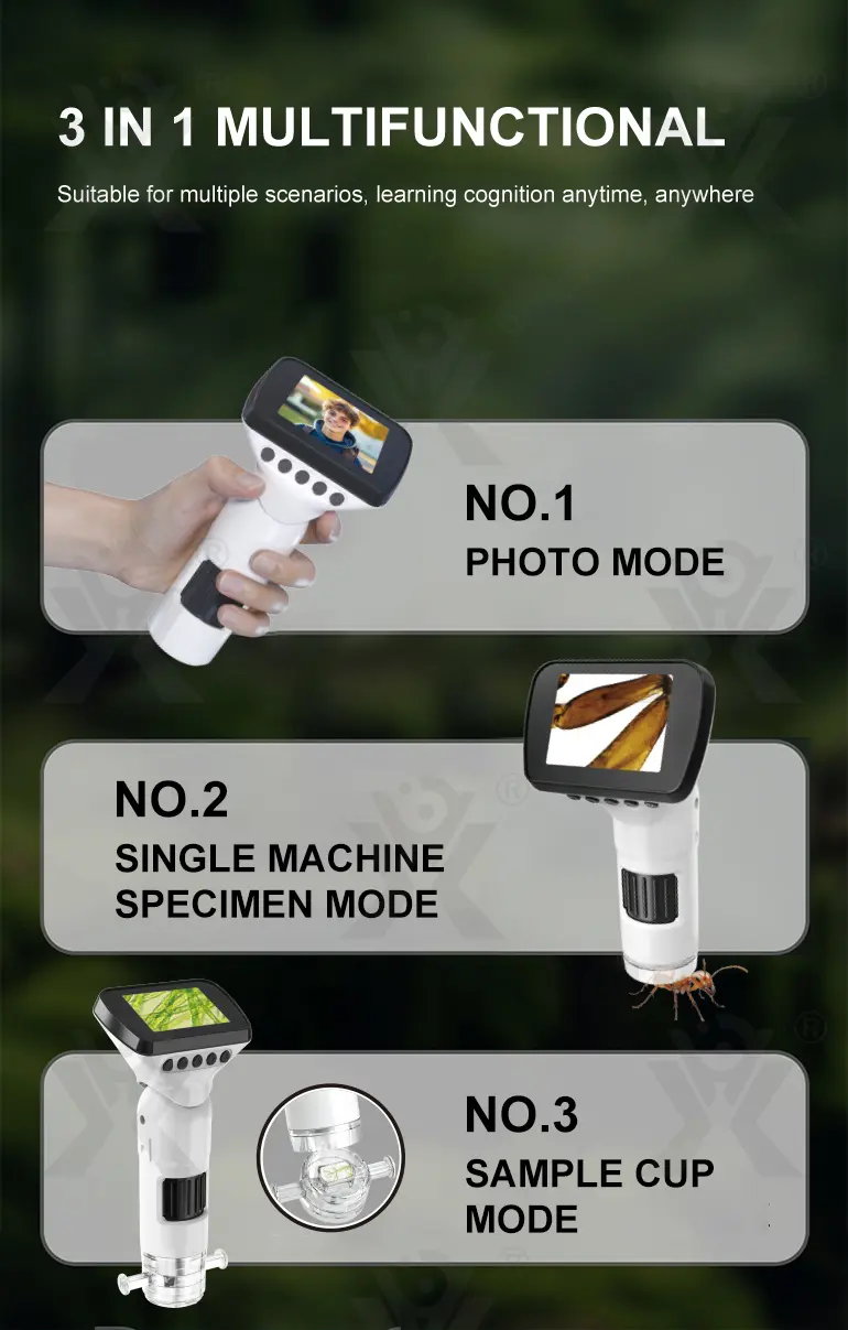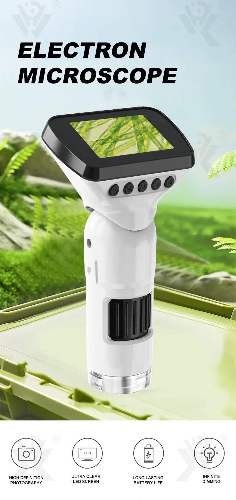Wholesale 3-in-1 electron microscope, HD photography, 2.4″ ultra-clear LED screen, infinite dimming, long battery life, specimen-free observation, photo/video sharing.