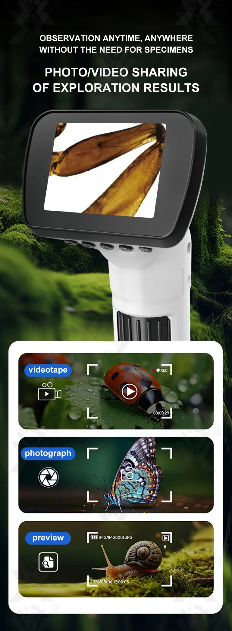 Explore the micro-world with three observation modes, and a vibrant 2.4″ display—perfect for young scientists aged 6+. -