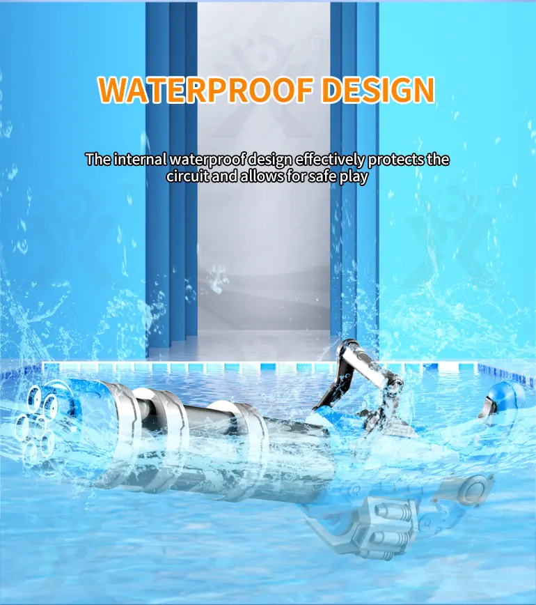 Internal waterproofing protects the circuitry of our Gatling water gun toy, allowing worry-free use in wet conditions like beaches and swimming pools. -