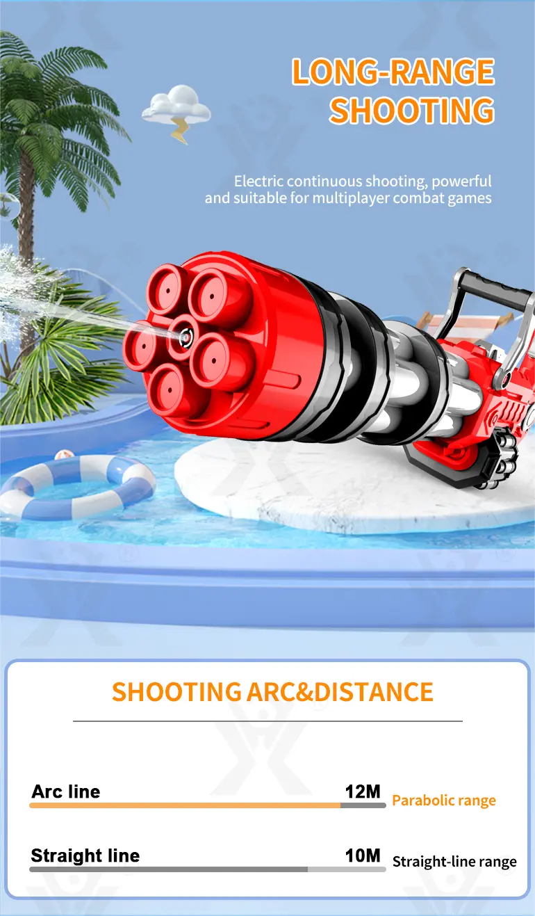 Large-Capacity Electric Gatling Water Gun – Long Range & Strong Stream for Outdoor Fun