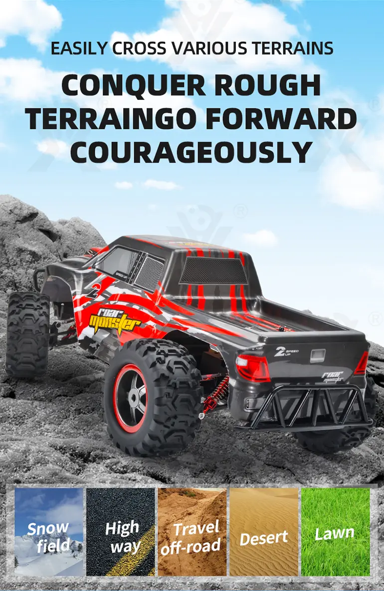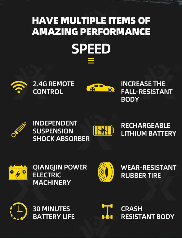 Equipped with independent shock absorbers and wear-resistant rubber tires, this wholesale high-speed car toy can provide smooth off-road driving.