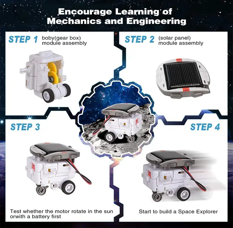 - Stimulate Creativity & Hands-On Skills: Our solar robot can help to enhance spatial imagination, hands-on skills, and problem-solving through building.