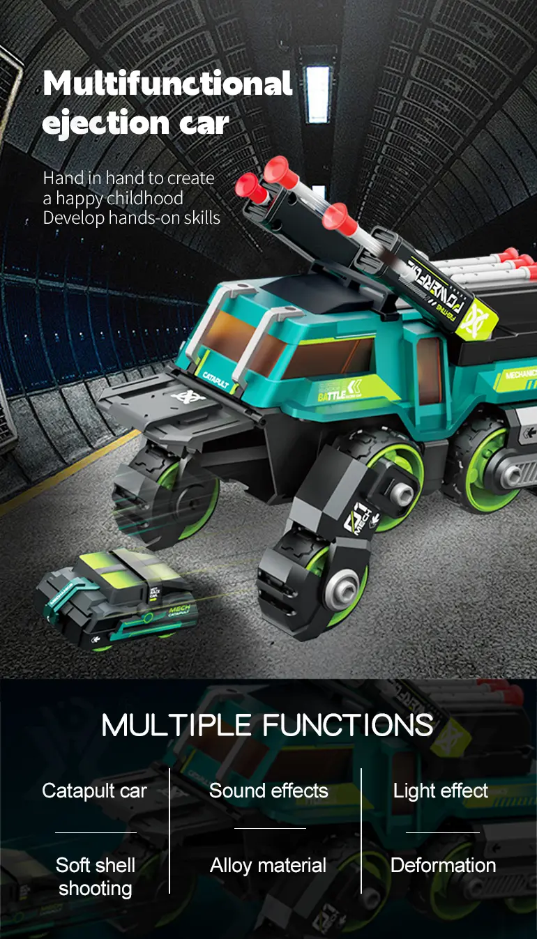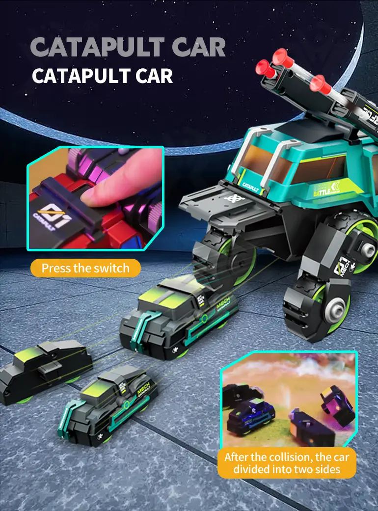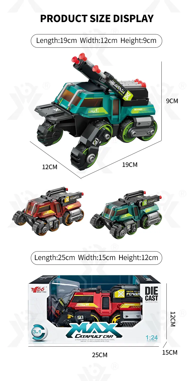 - 2-in-1 Deformation Design: Our diecast ejection 2-in-1 chariot can deform between the chariot and launcher for versatile play.