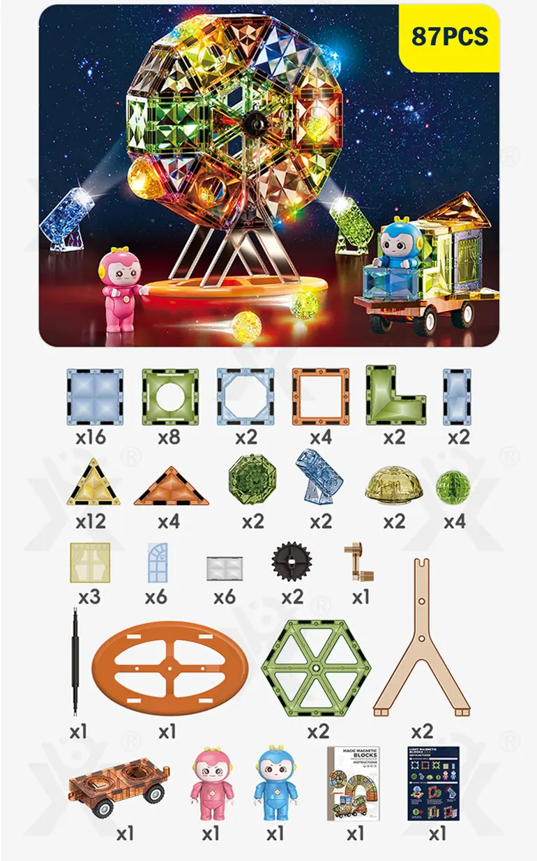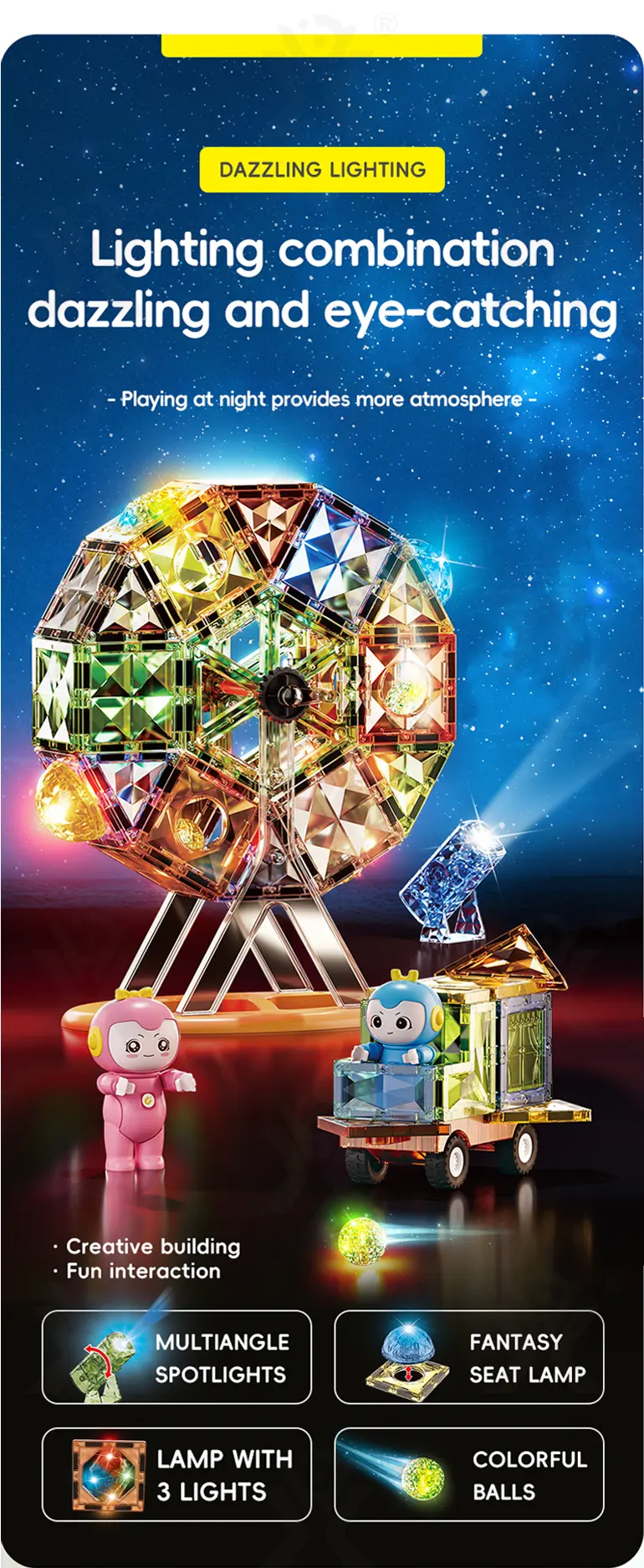 - Built-In Dazzling Light Effects: This jadeite magnetic building block can interact with LED lights (spotlights, seat lamp, multicolor balls) for captivating night play and immersive building scenes.