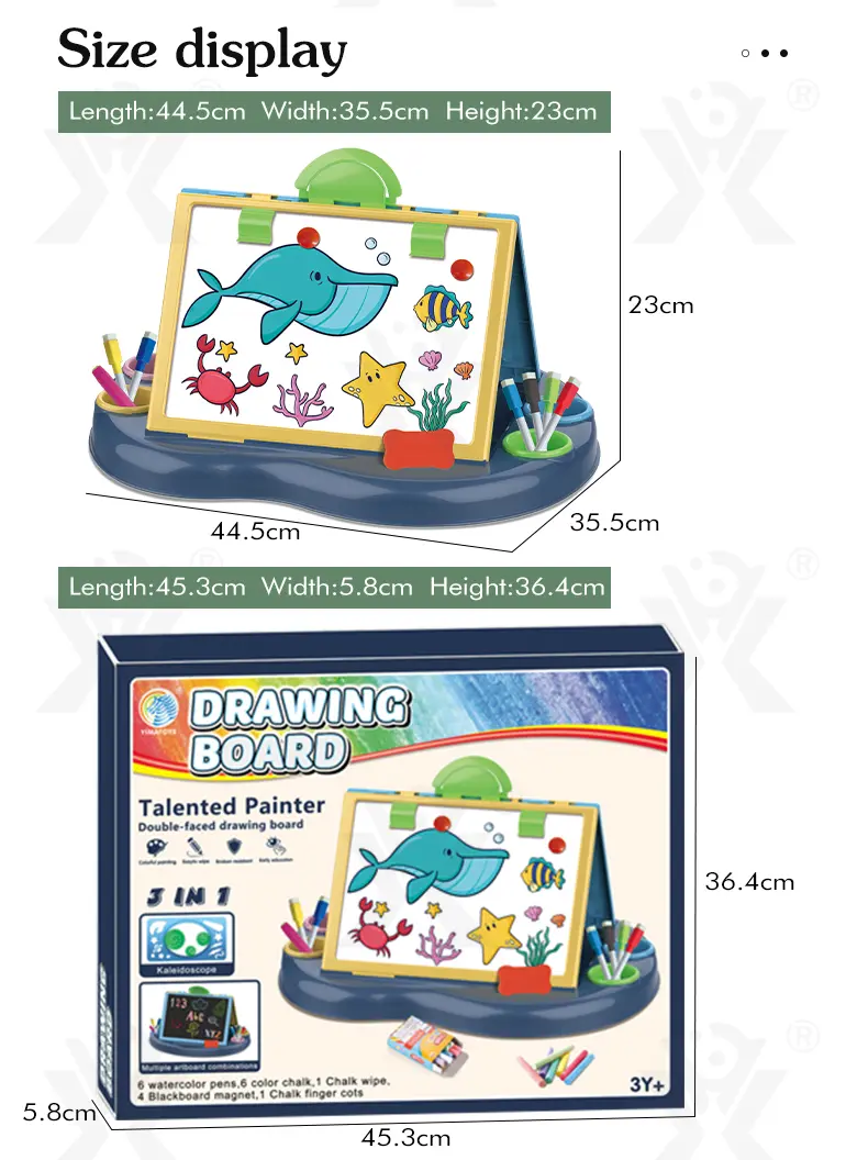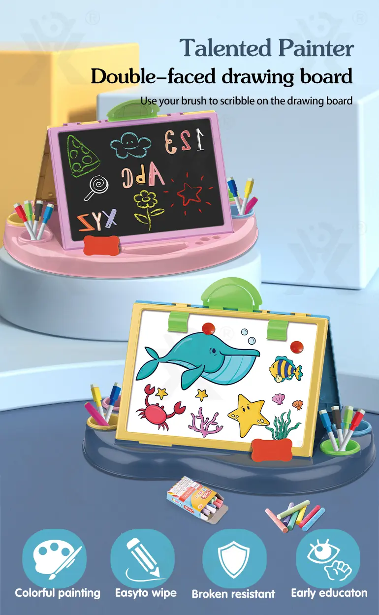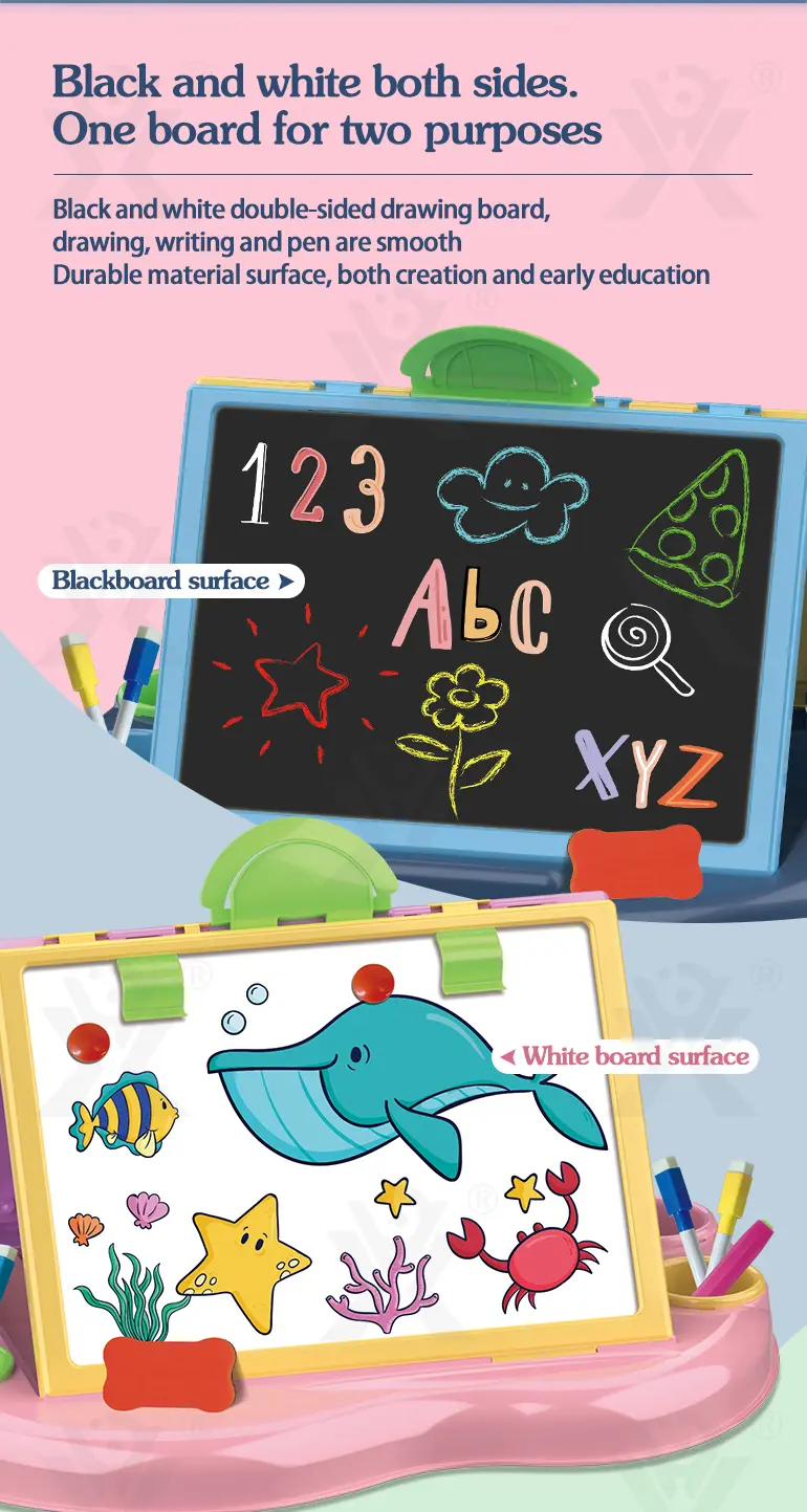 Bulk painting table toys for kids over 3 years old. It features a double-sided drawing board with storage! Black/white surfaces, rounded corners, easy to clean. Inspires creativity & early education. Bulk purchase supported. Get a quote now!