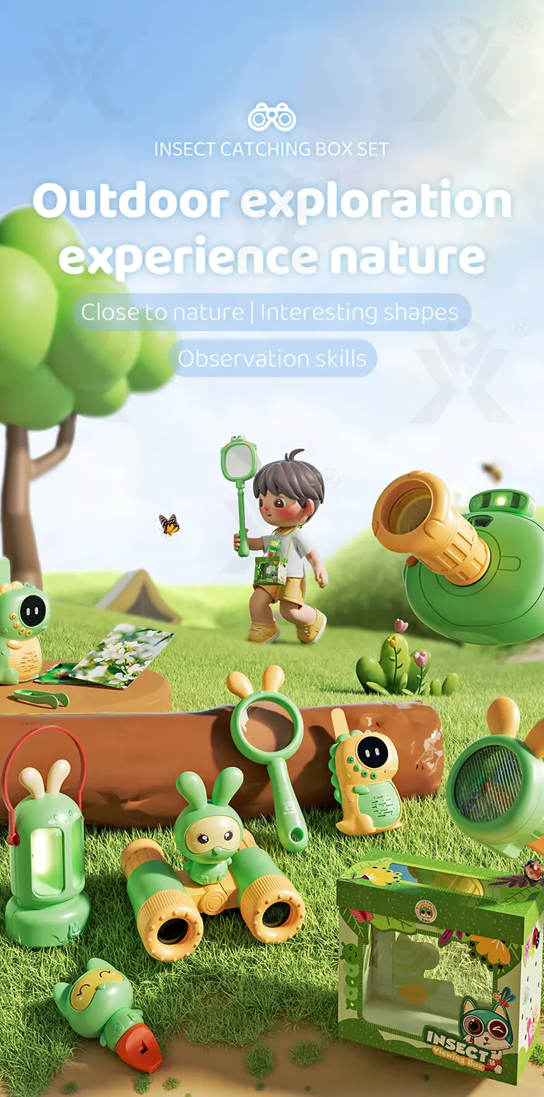 Wholesale complete 12-in-1 outdoor exploration set! This set of toys includes insect catching, a telescope, a projection camera & walkie-talkie – inspire nature discovery & STEM learning. Our diy exploration set facilitates kids to have fun in parks on weekends. Supported bulk procurement. Contact us now!