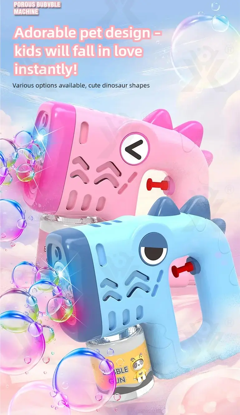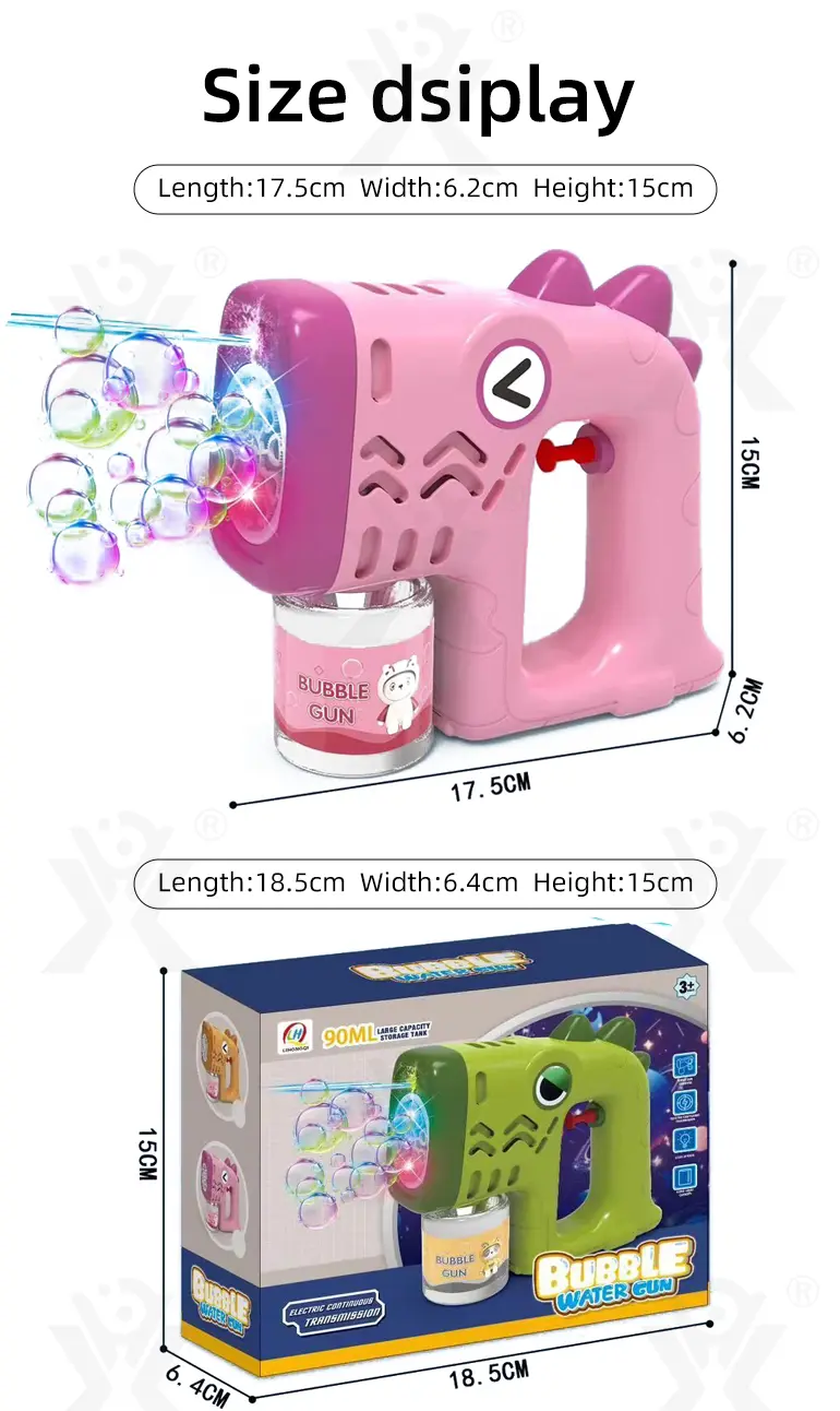 Wholesale 2-in-1 dinosaur bubble water gun toys! Multi-hole bubble maker plus water gun creates different but unit play mode for kids. colorful lights, a leak-proof design ensures kids’ safety for endless outdoor fun. Bulk purchase is available. Contact us for the wholesale price now!